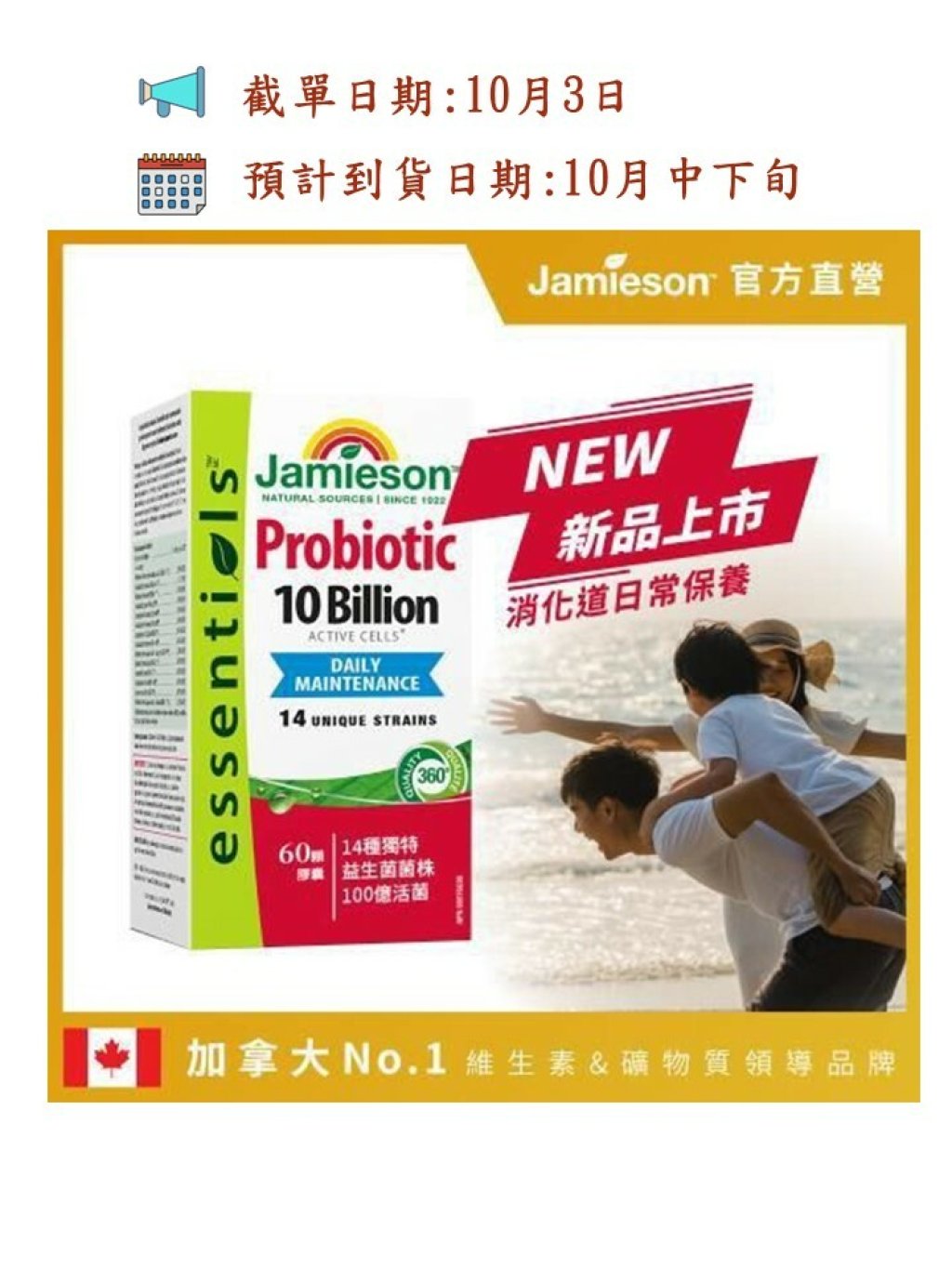 🍃Jamieson 100億益生菌配方,每粒含複合益生菌100億菌落形成單位及多種獨特的益生菌菌株,以維持您的消化健康。🔬以先進科技提供防潮保護,確保有效期內活躍的細胞數量,以確保功效和新鮮度。