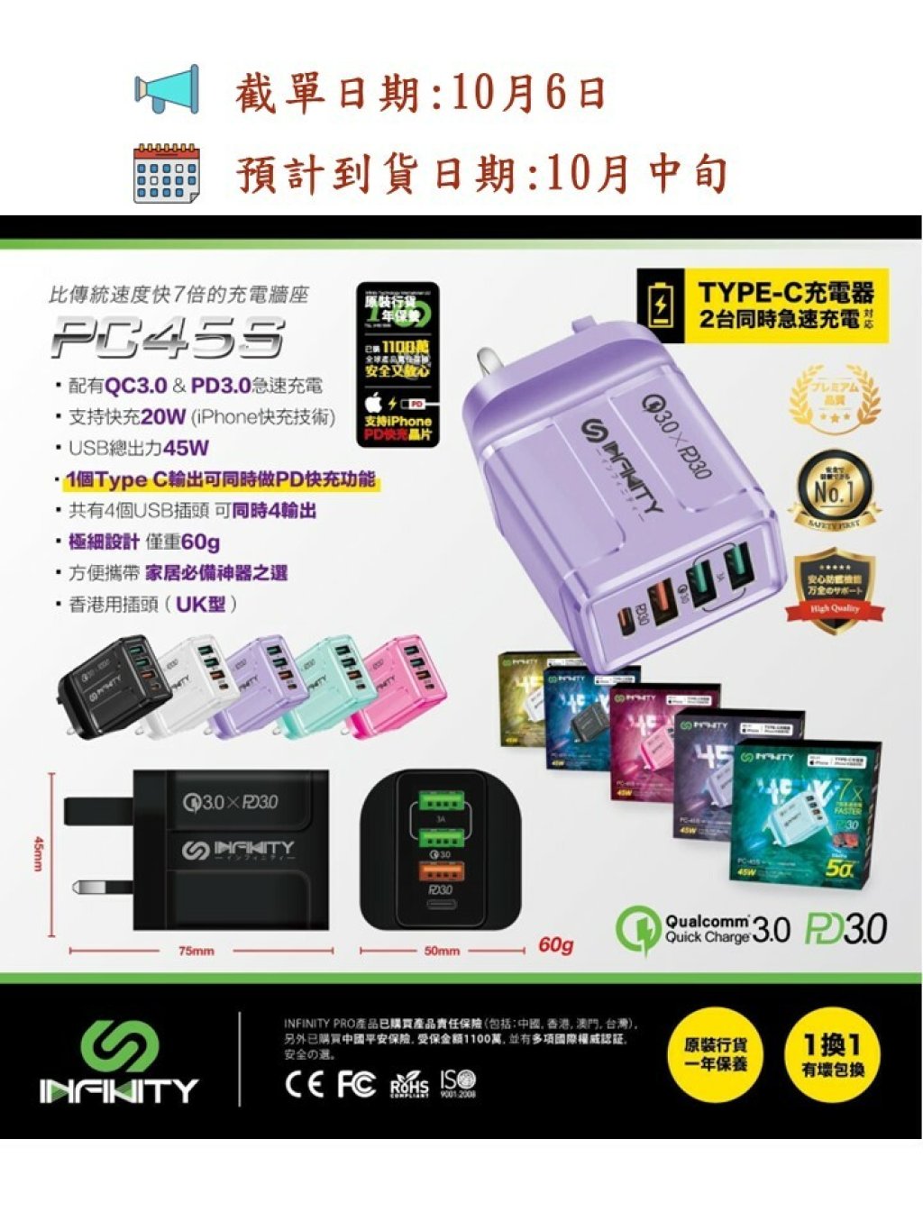 Type-C3 Output: 5V/3A, 9V/2.22A,12V/1.67A(20W)