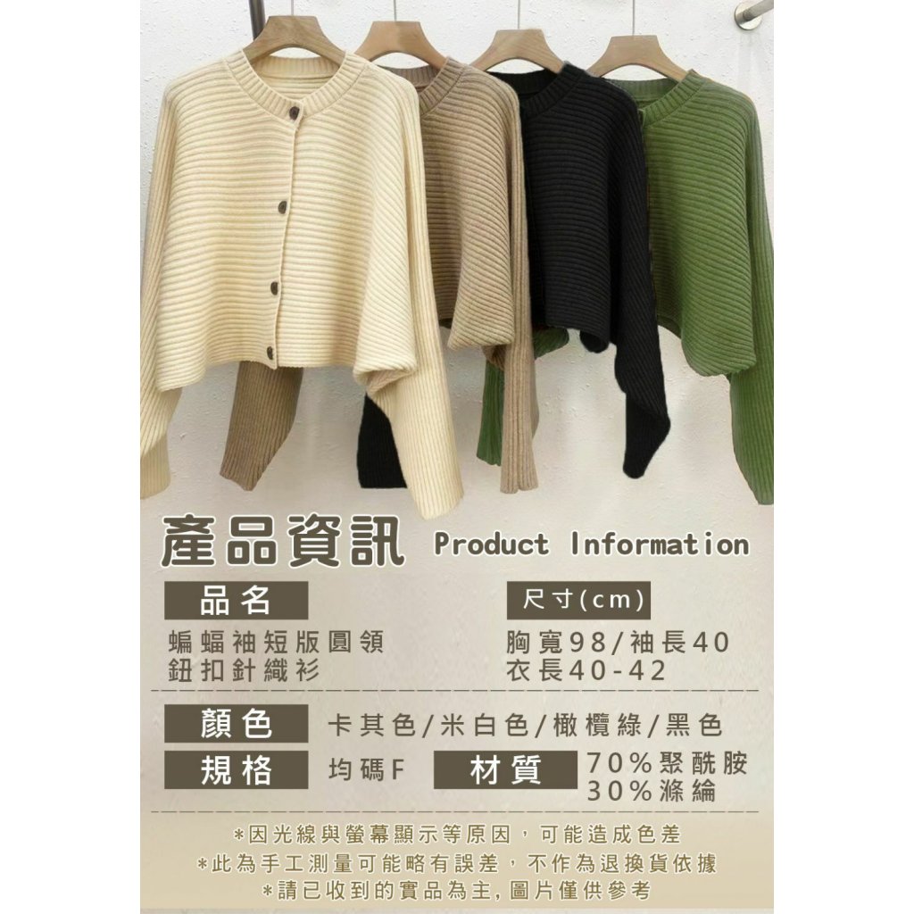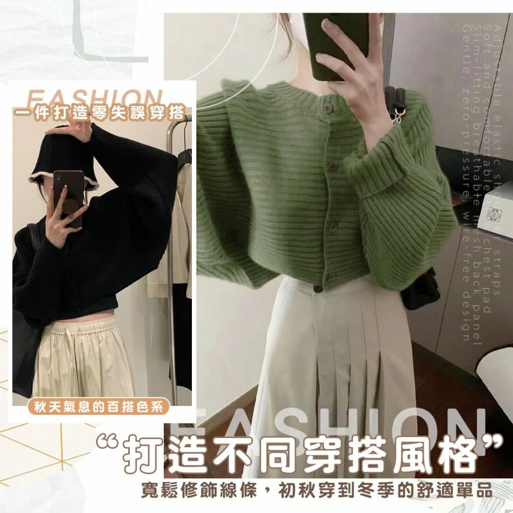 🟡蝙蝠袖短版圓領鈕扣針織衫🟡