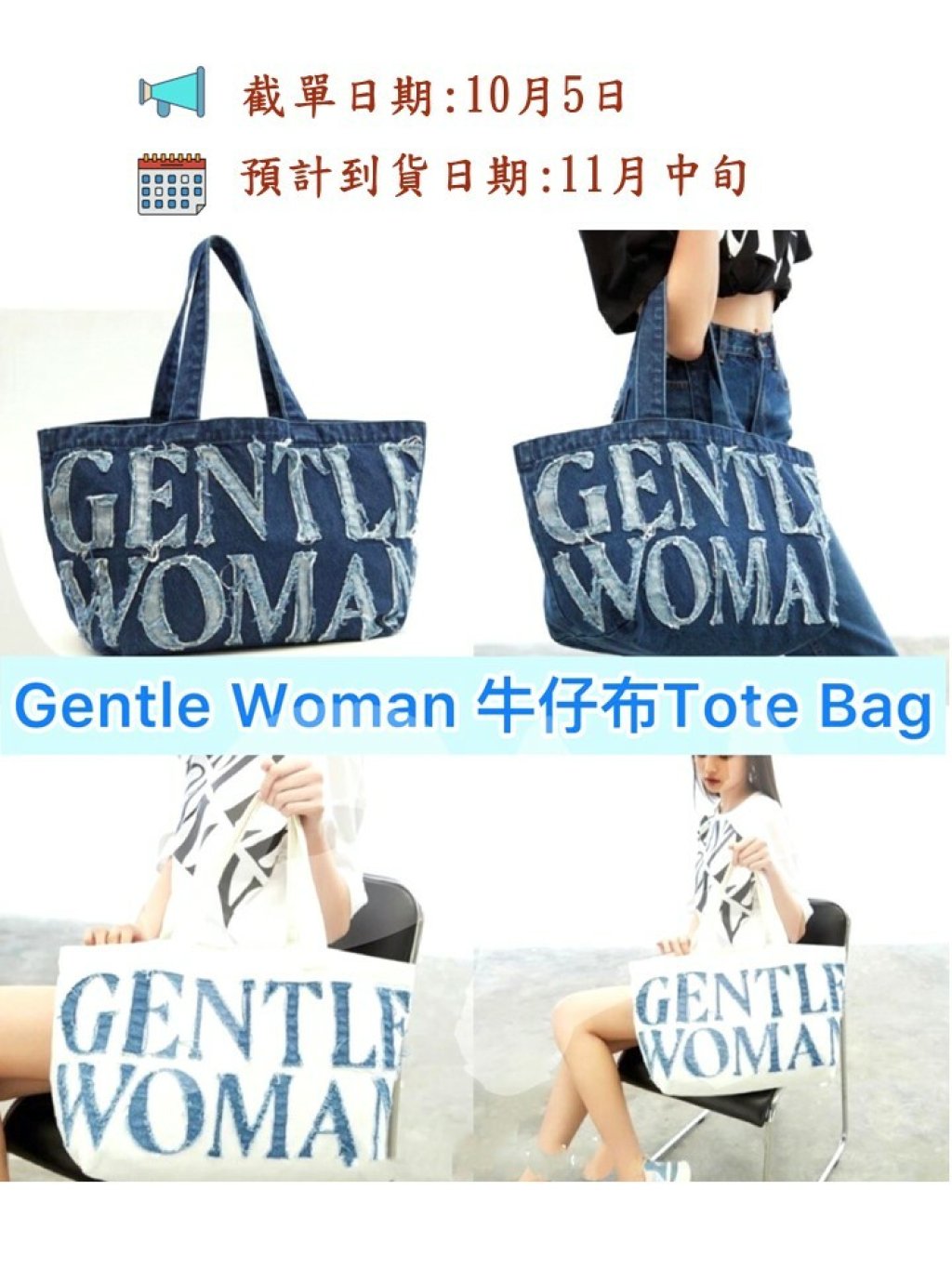 泰國人氣潮牌🇹🇭Gentle Woman牛仔布可上膊tote bag