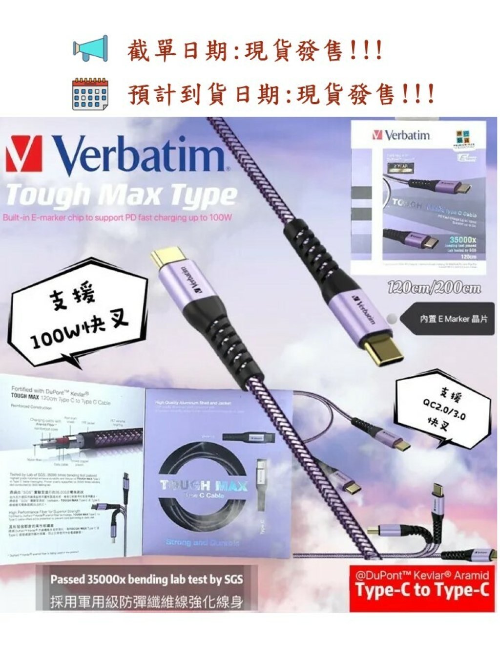 Verbatim 支援100W既快叉C to C線 終於再番貨啦‼️仲要係少有既金屬紫色🥹