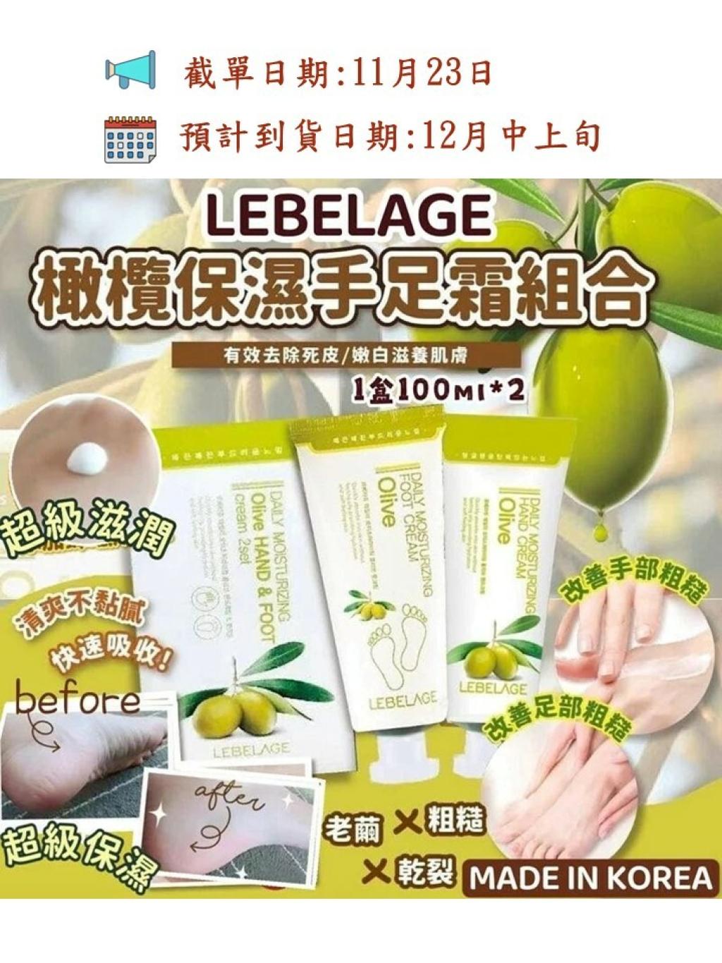 韓國 LEBELAGE~橄欖保濕手足霜組合套装