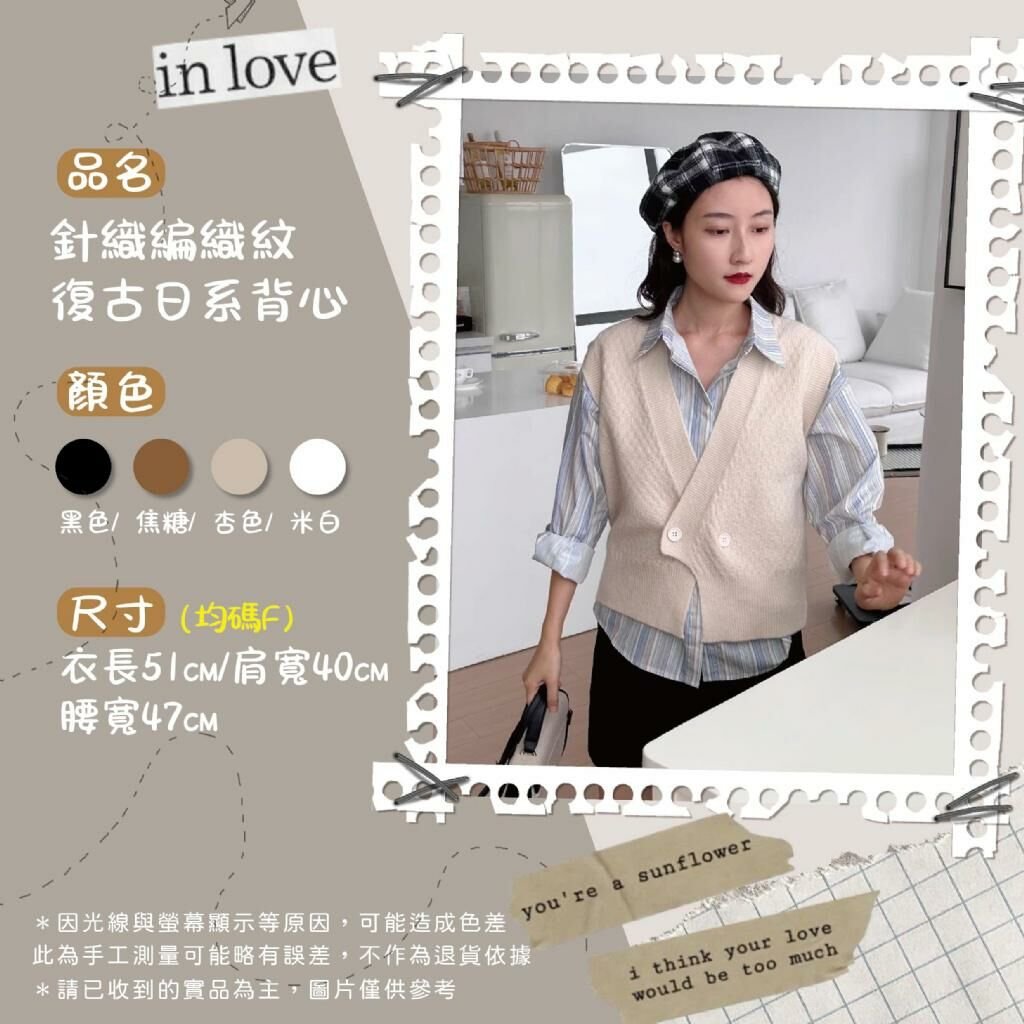 🟡針織編織紋復古日系背心🟡