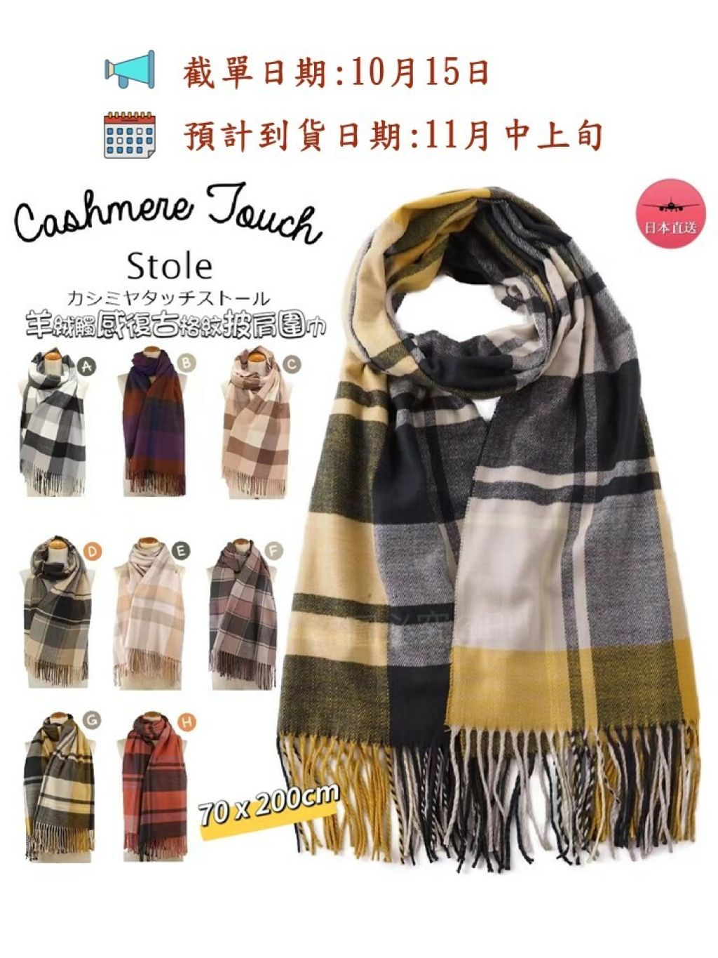 🎌日本Lune jumelle 羊絨觸感格紋披肩圍巾🎌
