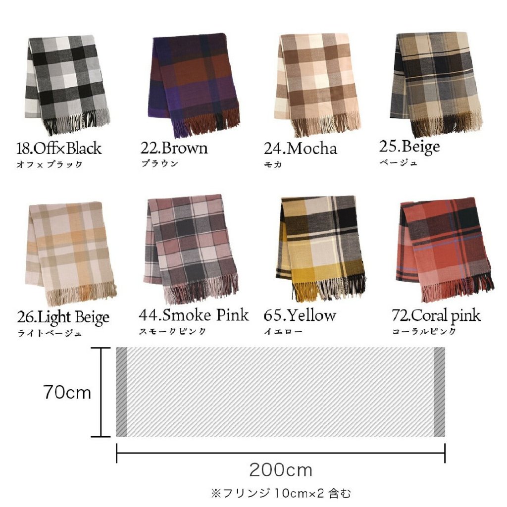 日本Lune jumelle 羊絨觸感格紋披肩圍巾
