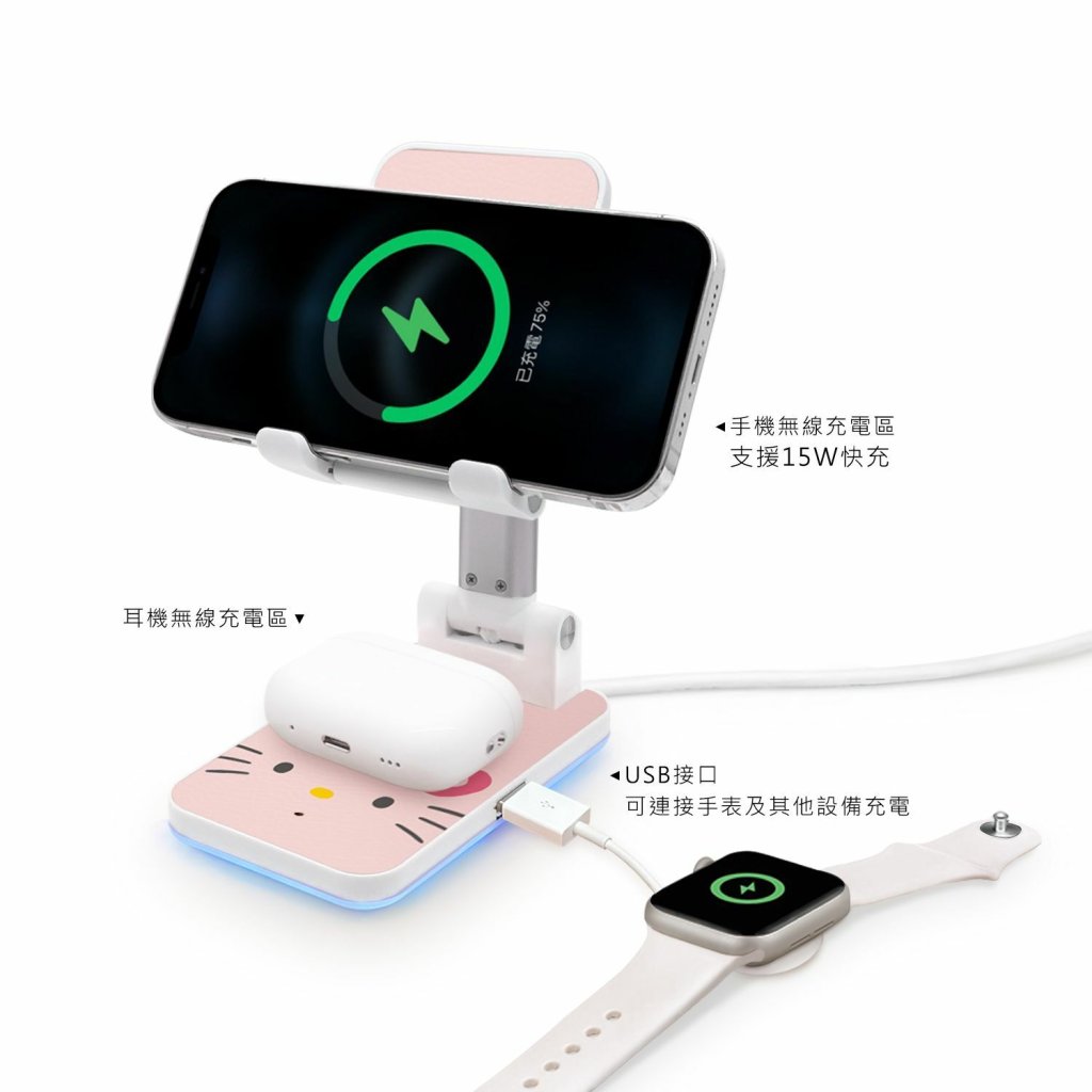 #三麗鷗正版授權 #HelloKitty #Kitty #凱蒂貓 #療癒小物 #打卡必備 #KT #無線充電摺疊支架 #手機支架 #無線充電座 #支援多台設備充電