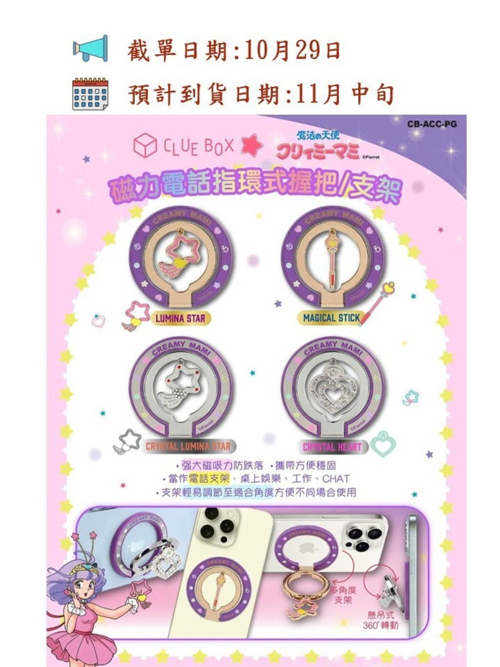 🟡Clue Box ✖️ Creamy Mami 小忌廉🧲📲磁力電話指環式握把/支架🟡