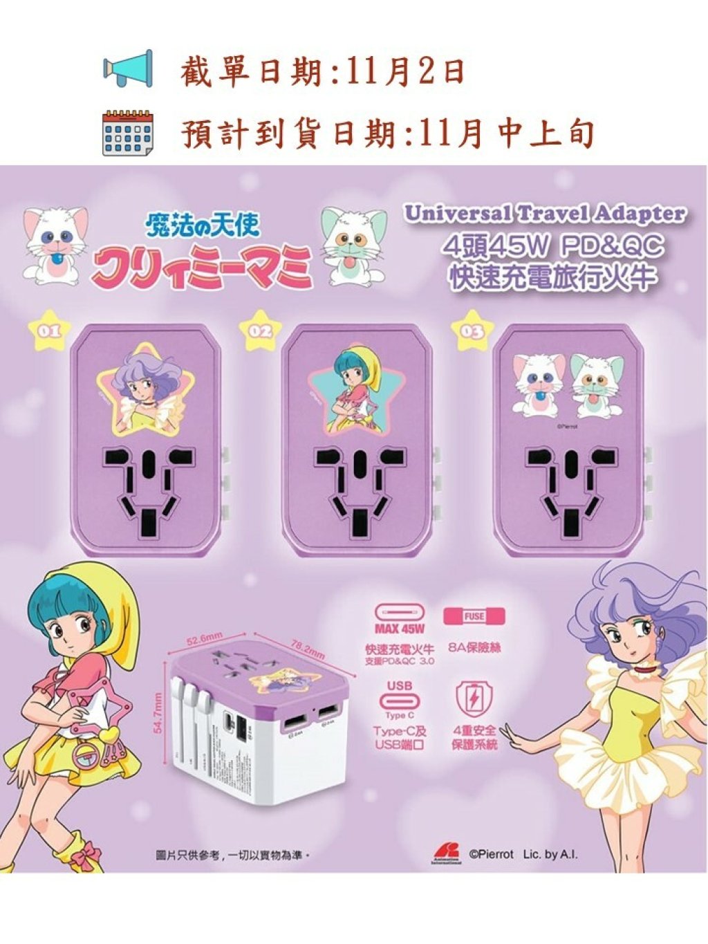 🟡我係小忌廉 4頭45W PD & QC快速充電通用旅行轉插🟡
