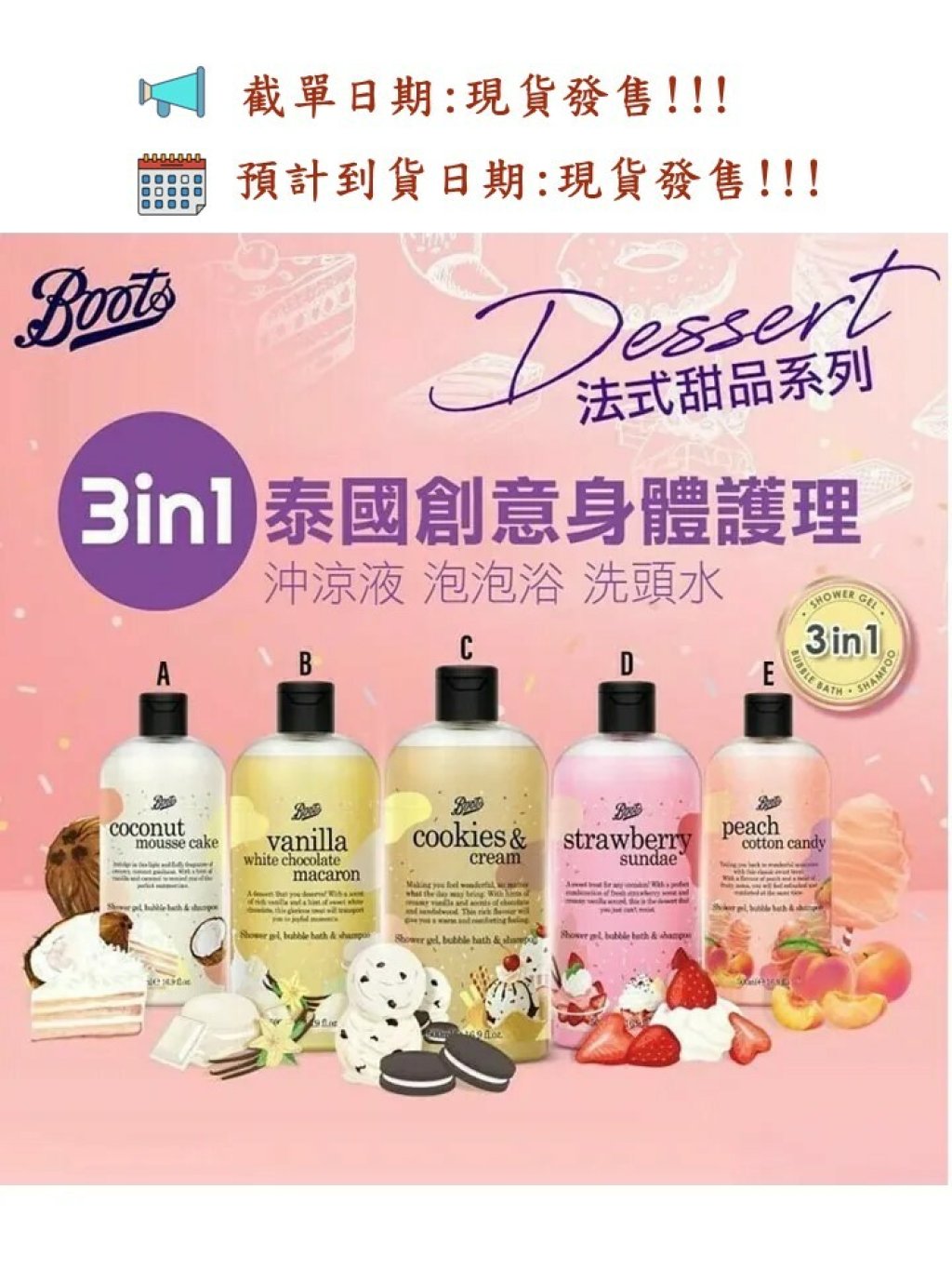 泰國Boots甜品系列3in1(沐浴+泡泡浴+洗髮露)500ml