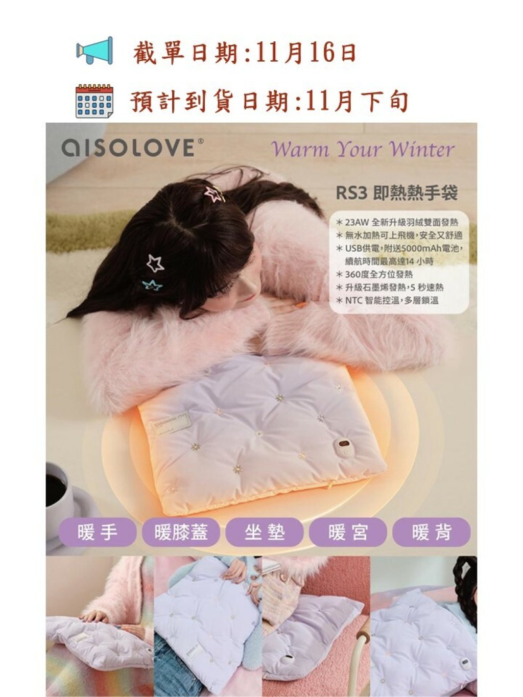 🟡aISOLOVE RS3 即熱熱手袋🟡