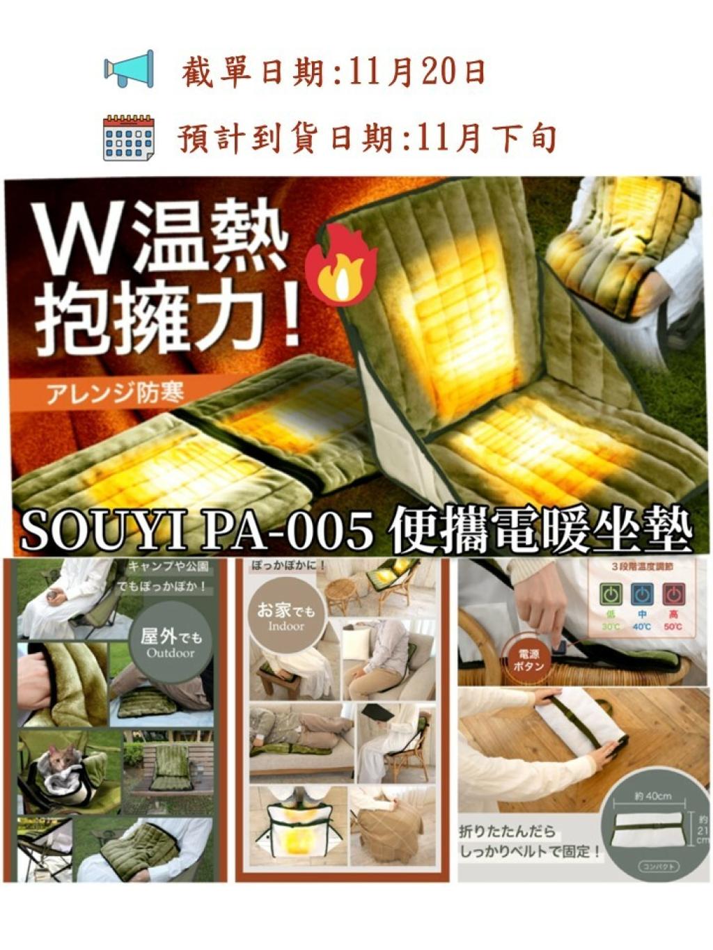 🟡SOUYI PA-005 便攜電暖坐墊🟡