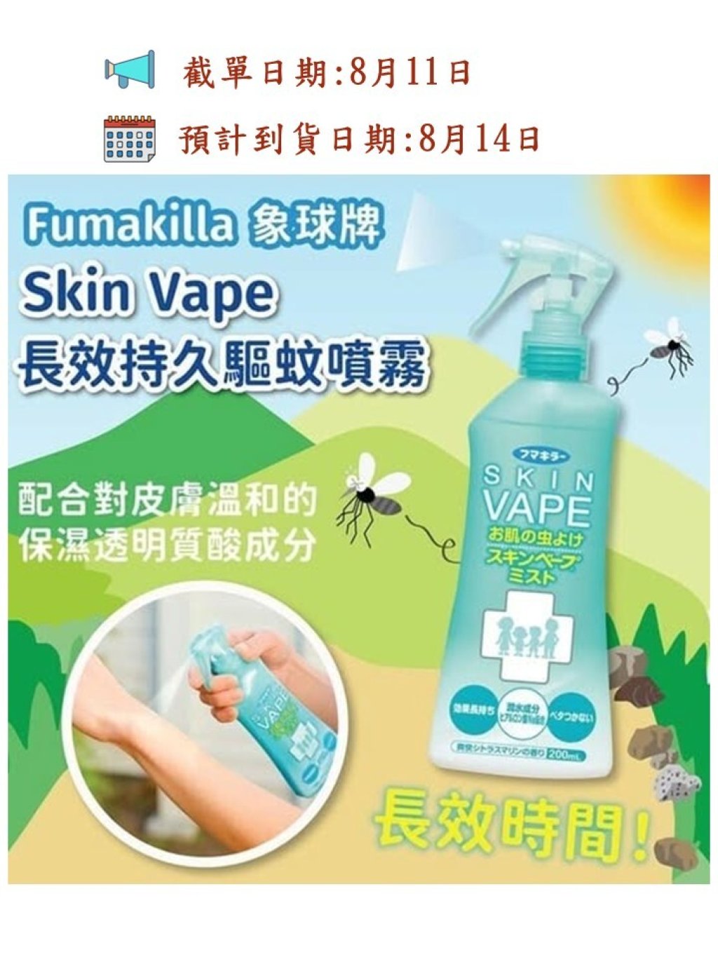 日本製 Skin Vape 對預防蚊 跳蚤 臭蟲 塵蟎 蒼蠅 等昆蟲都十分有效!