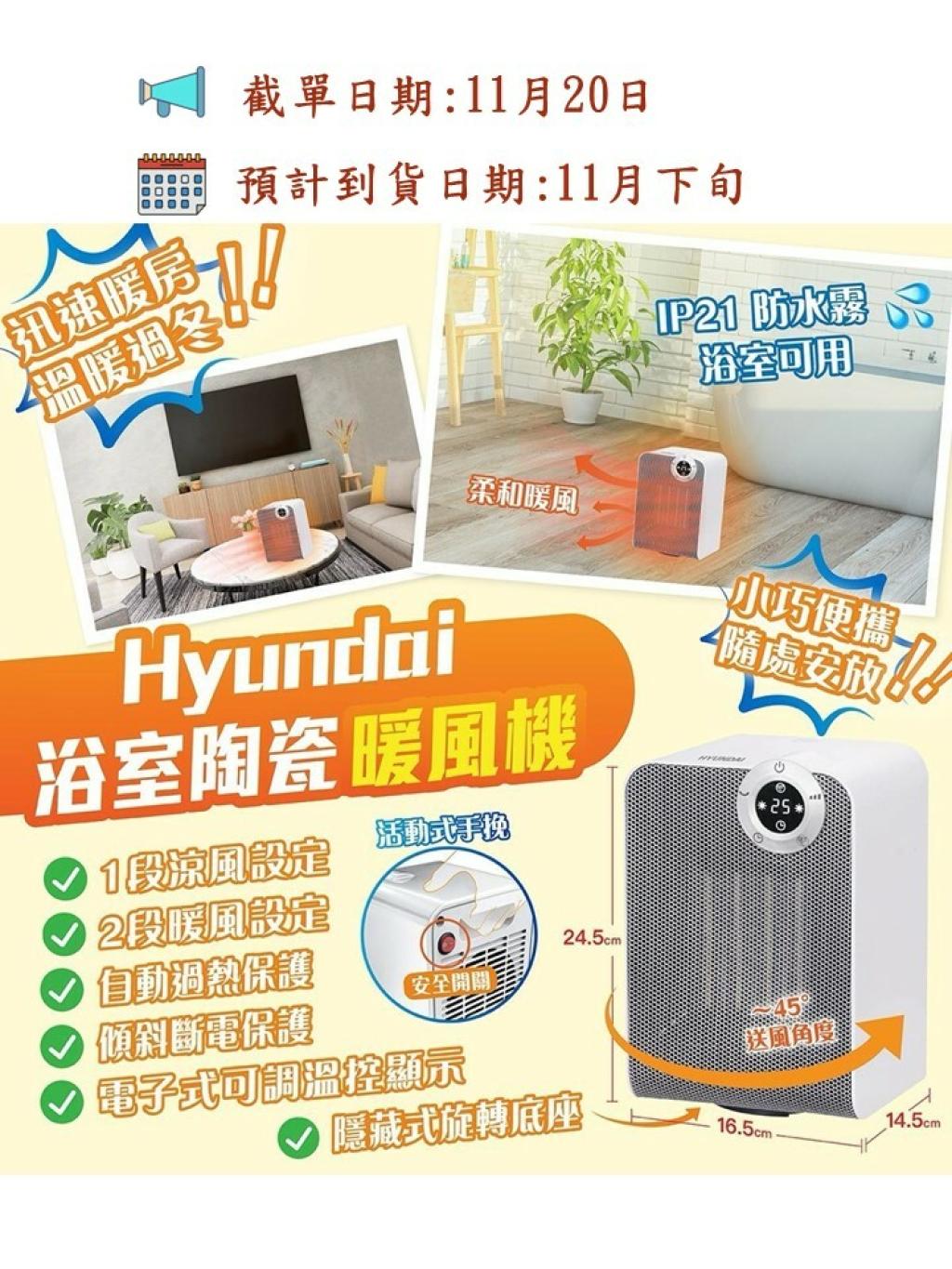 有部Hyundai 陶瓷暖風機在身邊,可以著少啲衫都唔怕著涼。