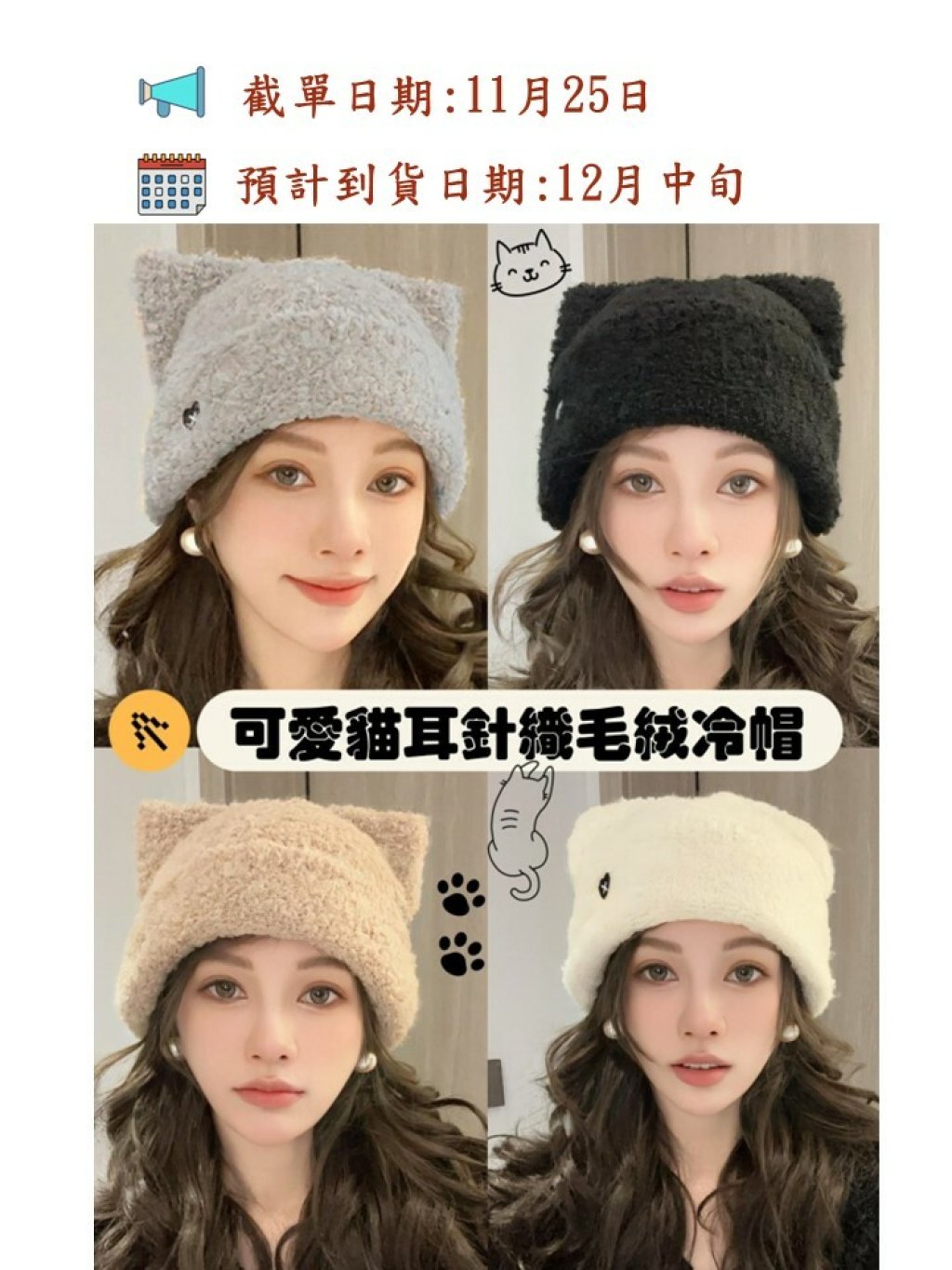 🟡超可愛貓耳針織毛絨冷帽🟡