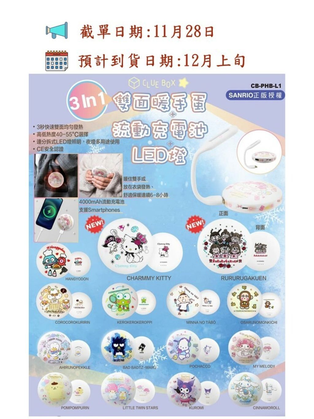 Clue Box ✖️Sanrio 3 合 1 雙面暖手蛋/流動充電池/LED燈 - 11月團