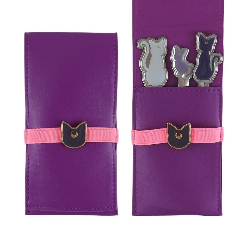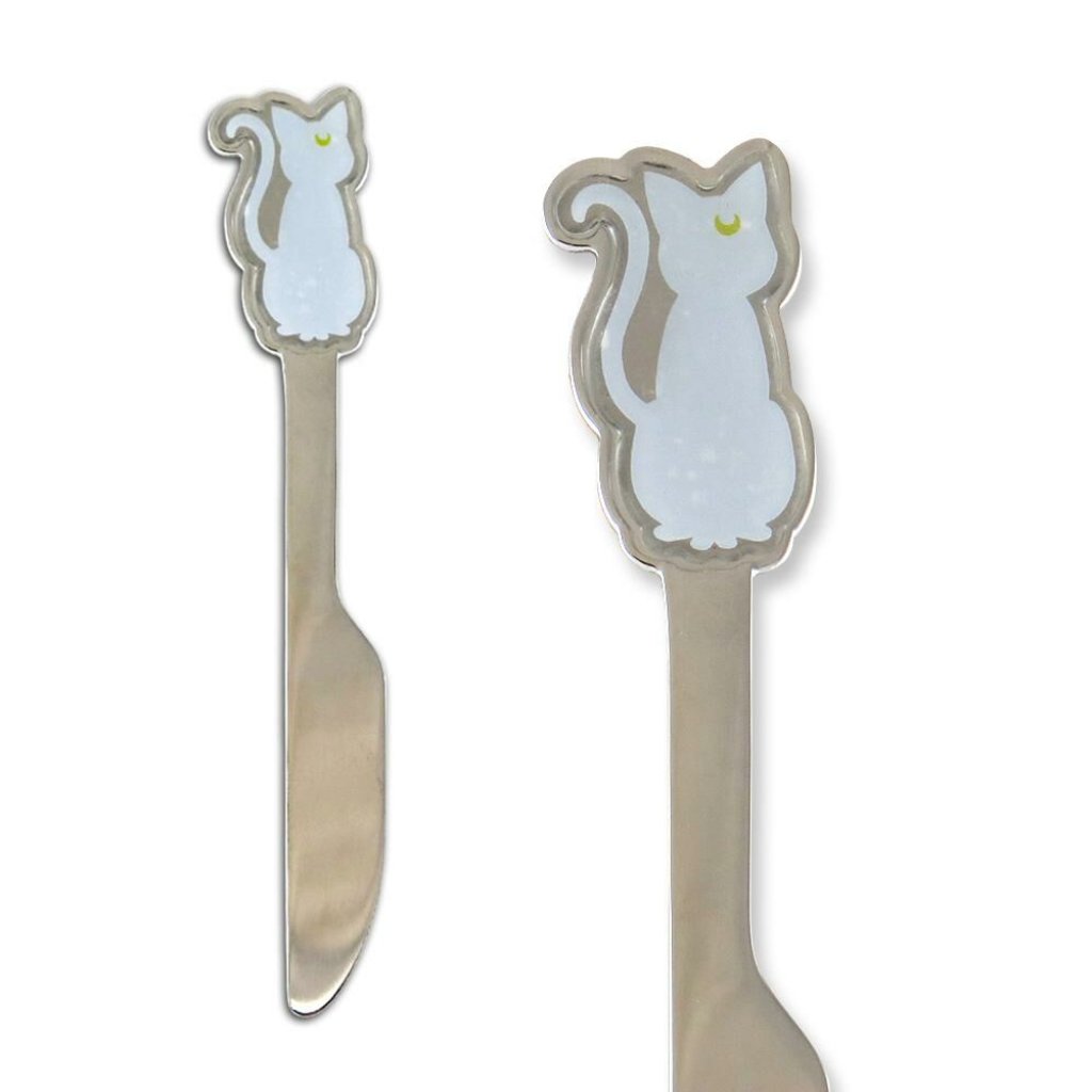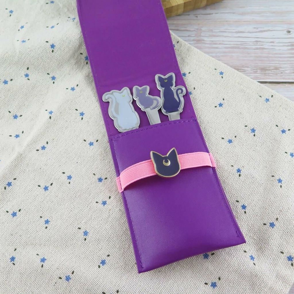 月貓款~湯匙 14×2.5cm、叉子 15×2.5cm、餐刀15.5×2.5cm、收納袋 (摺疊後) 7.7×15.5cm