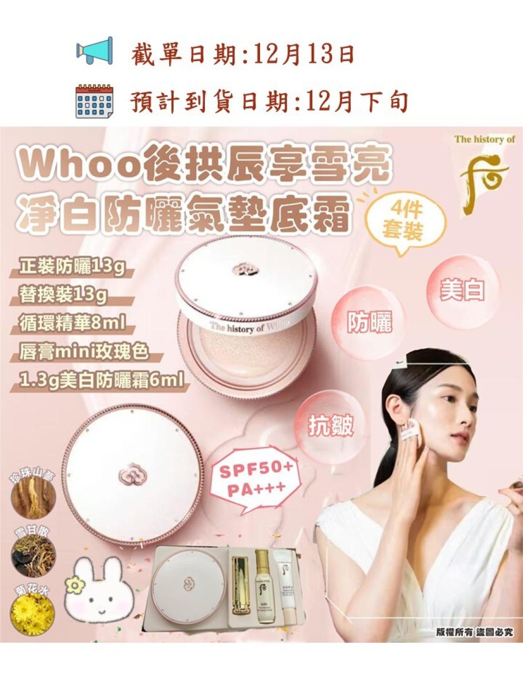 The History of Whoo 後拱辰享雪亮淨白防曬氣墊底霜 SPF50+/PA+++ 4件套裝🎁