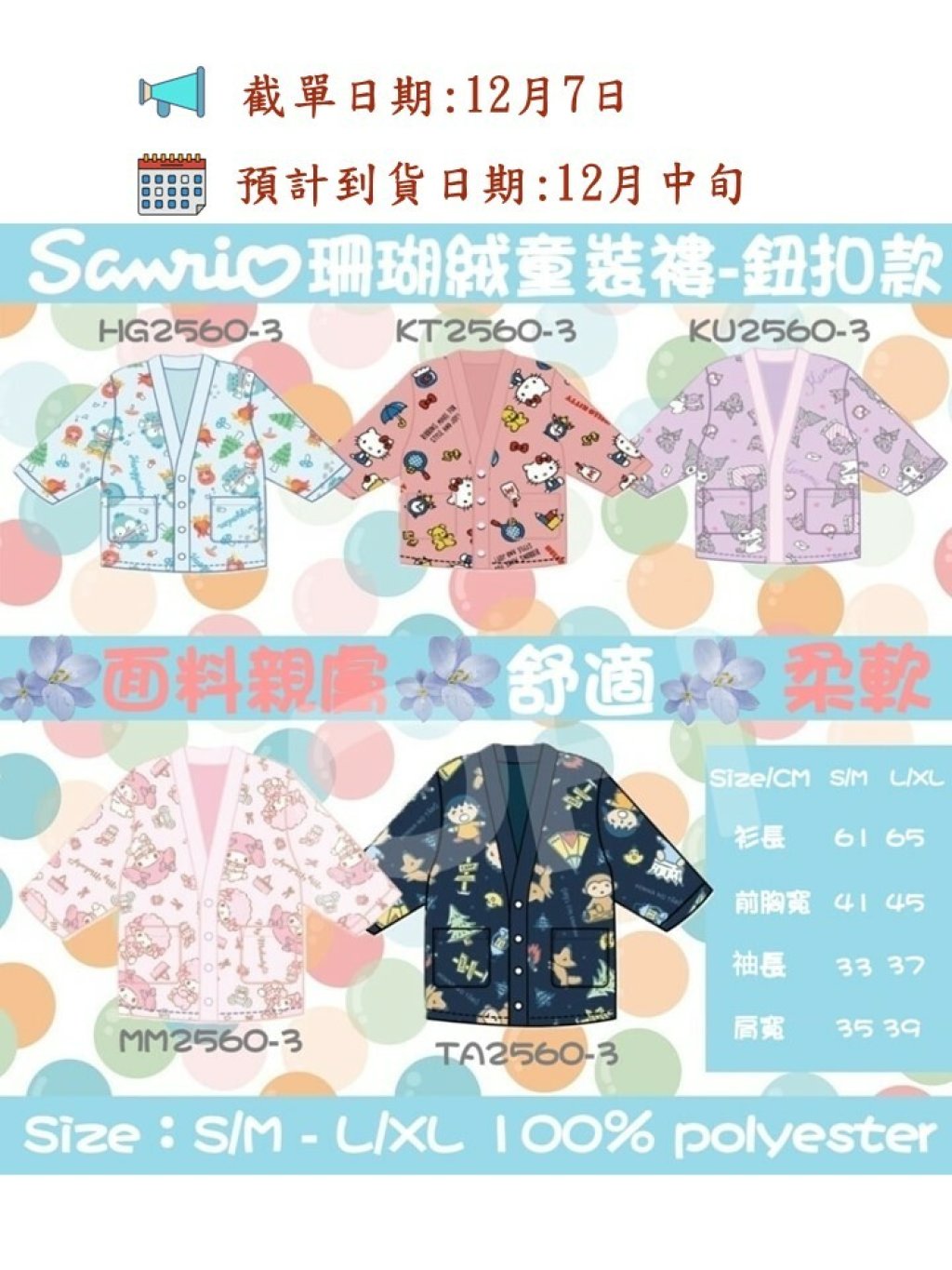 2023年 Sanrio 小朋友粉絲冬日必備之選😍屋居保暖和式珊瑚絨童裝褸🌸具有兩個尺碼🤘適合唔小朋友身型,超級可愛🥰