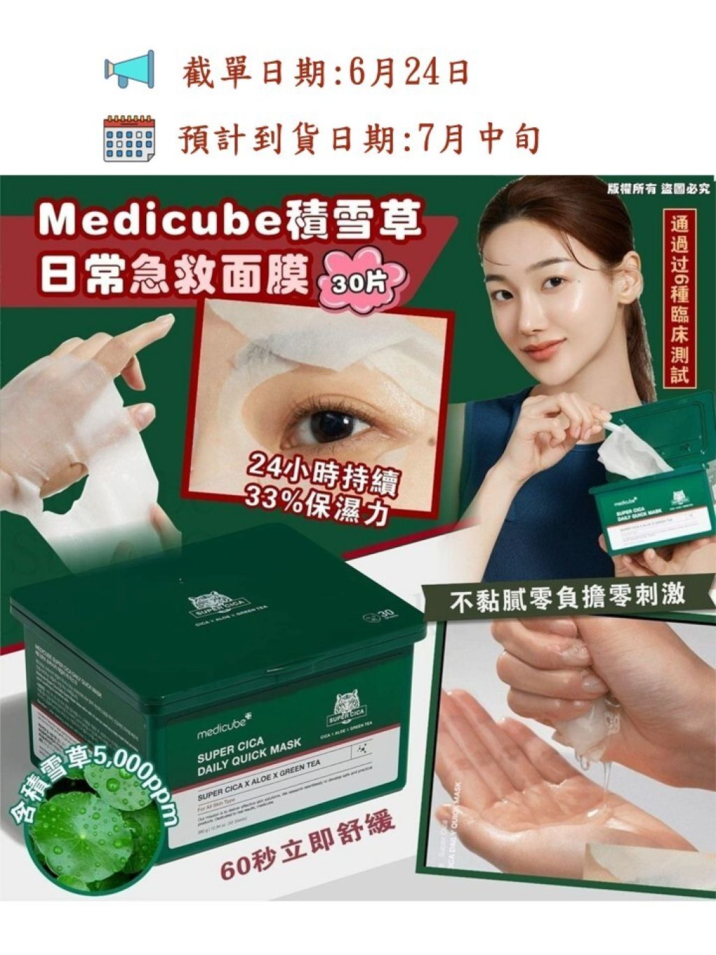 韓國🇰🇷Medicube積雪草日常急救面膜30片