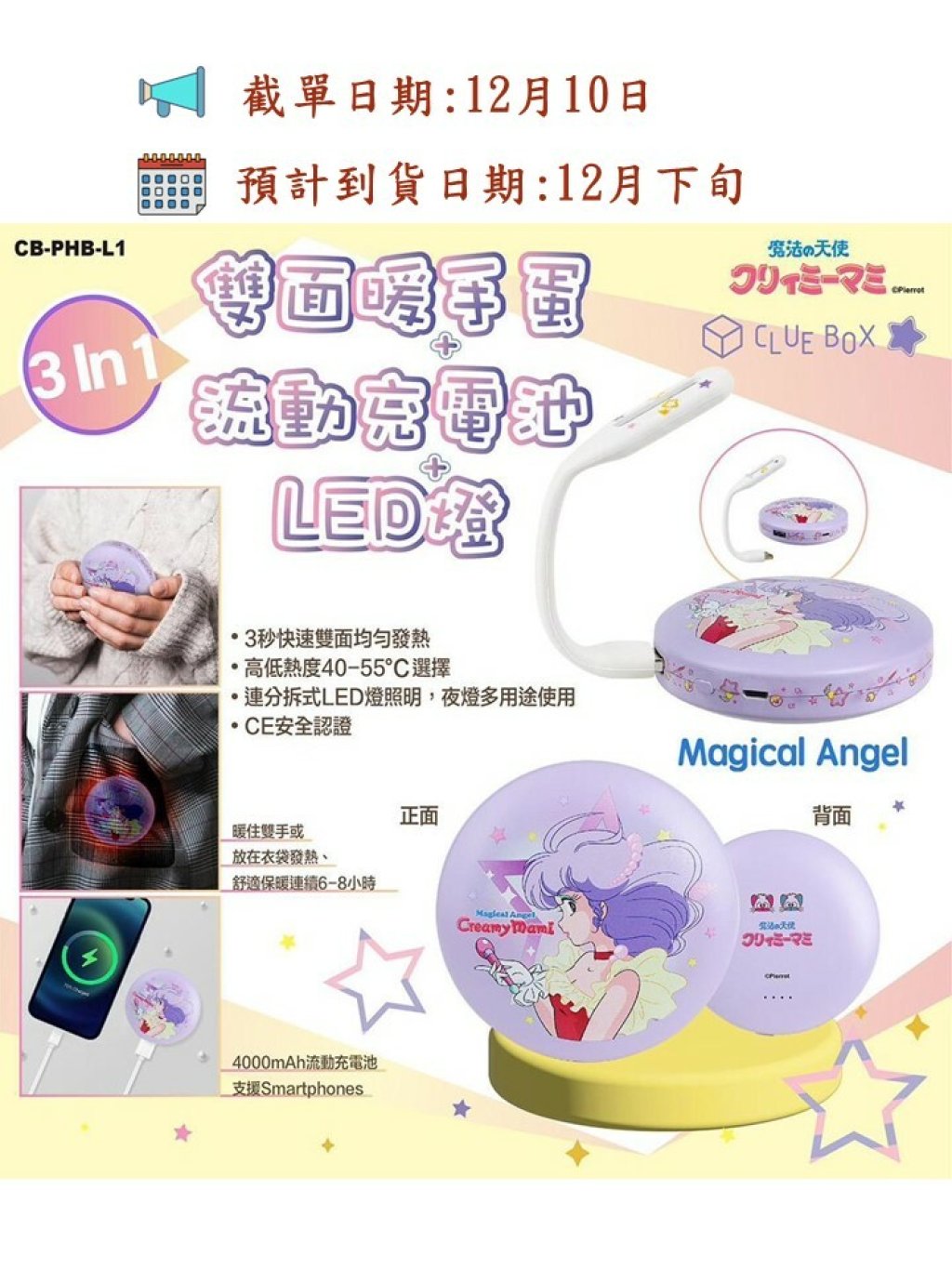 Creamy Mami 系列💥💥超人氣💥💥3 合 1 雙面暖手蛋/流動充電池連LED燈 - 而家岀咗紫色款喇!👏👏