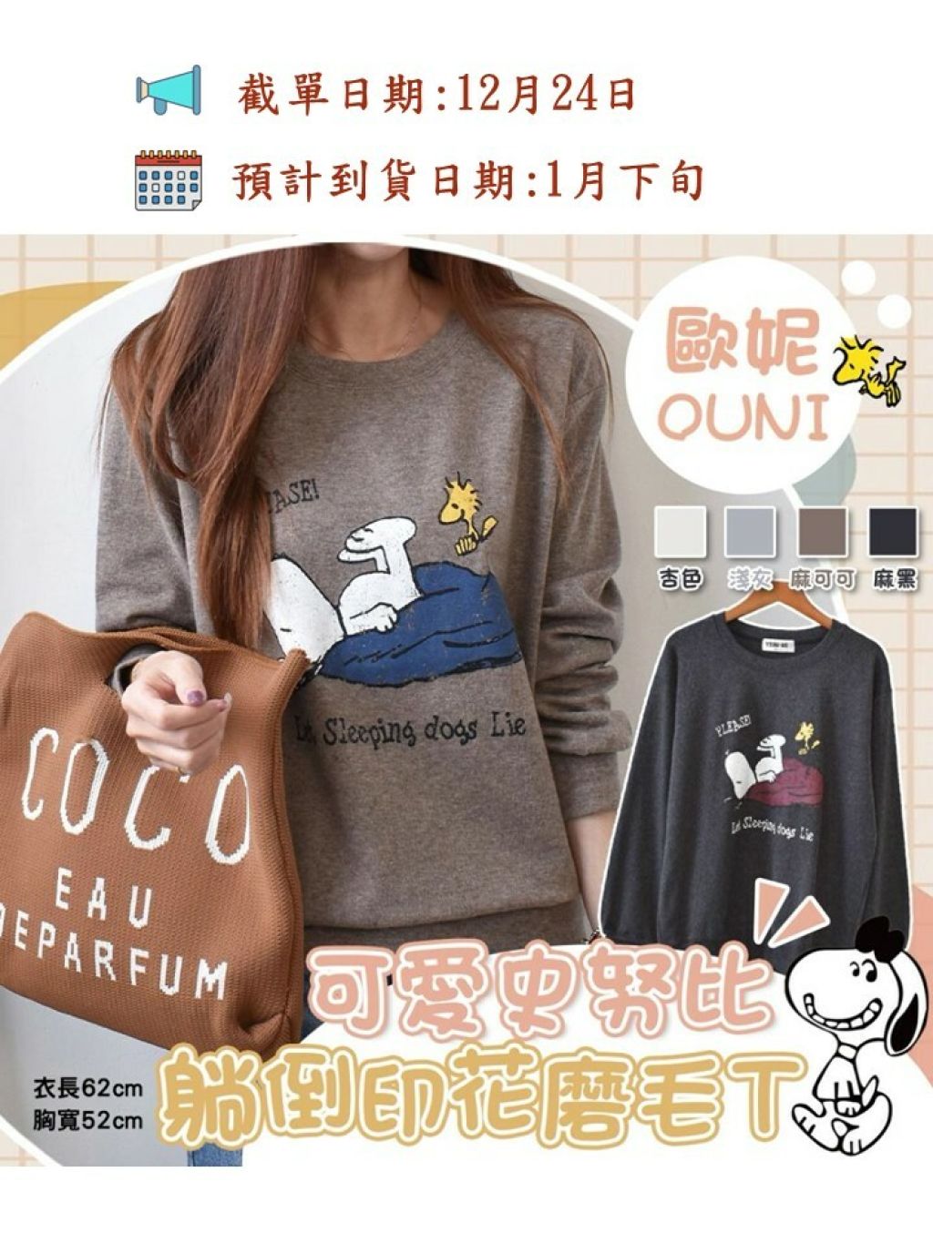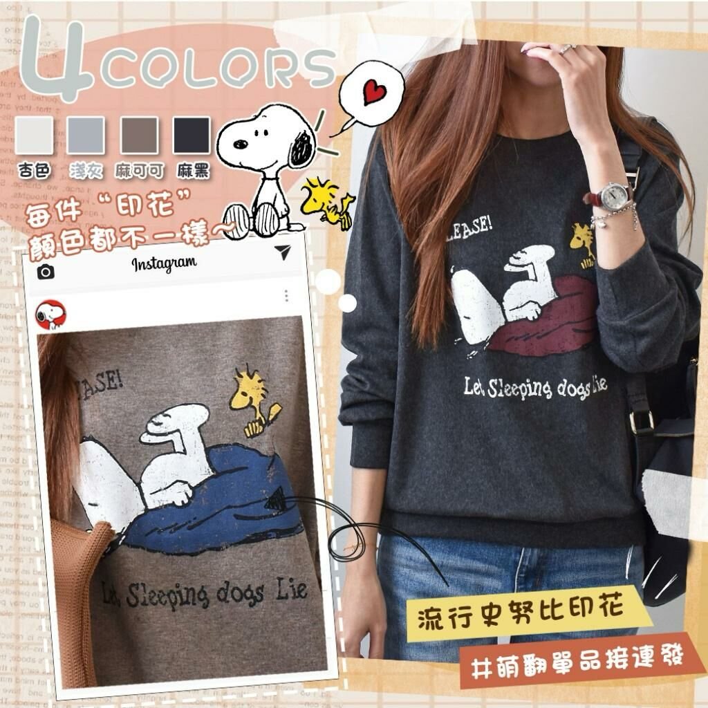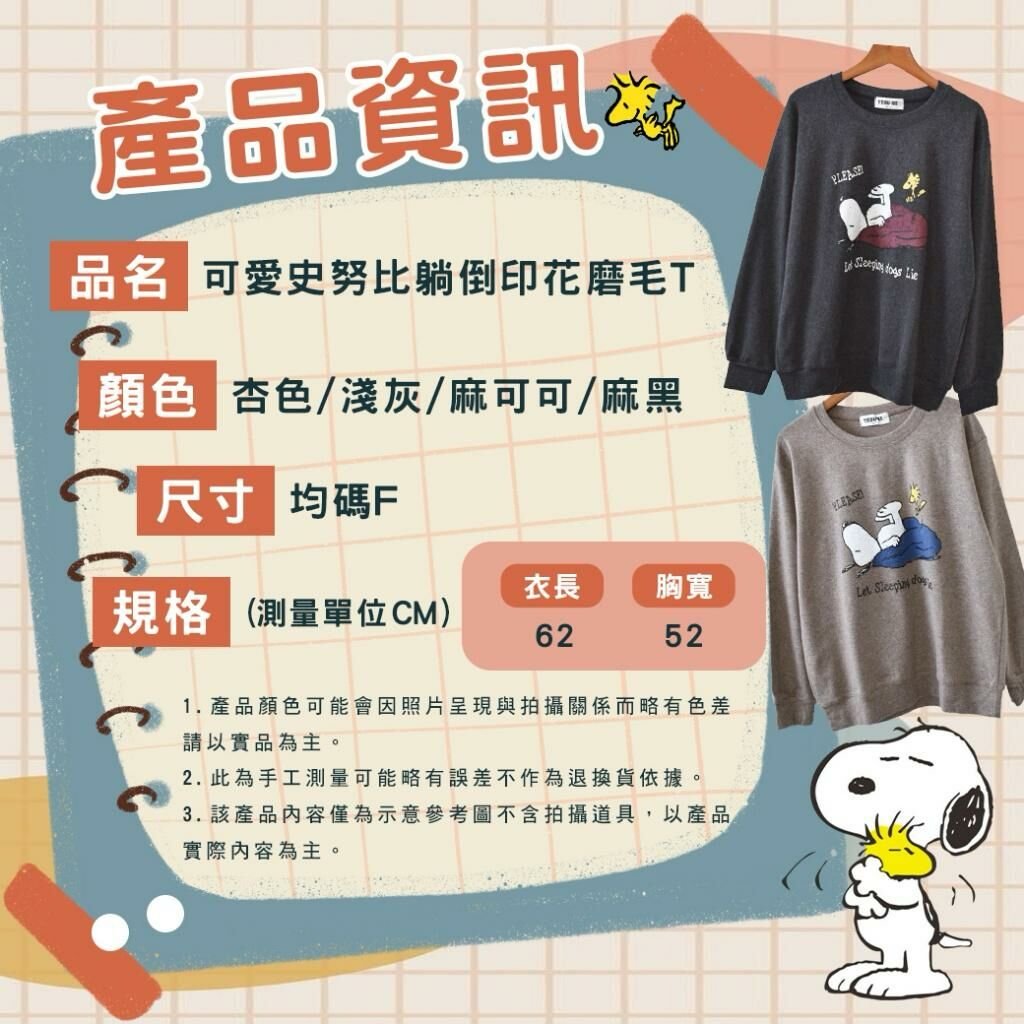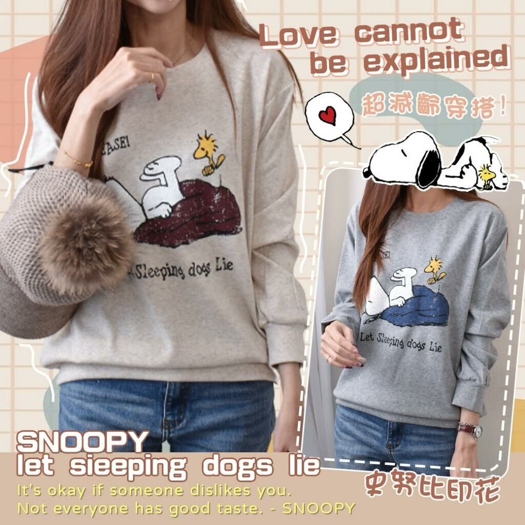 🟡MIT 歐妮Ouni 可愛史努比躺倒印花磨毛T (F1321)🟡