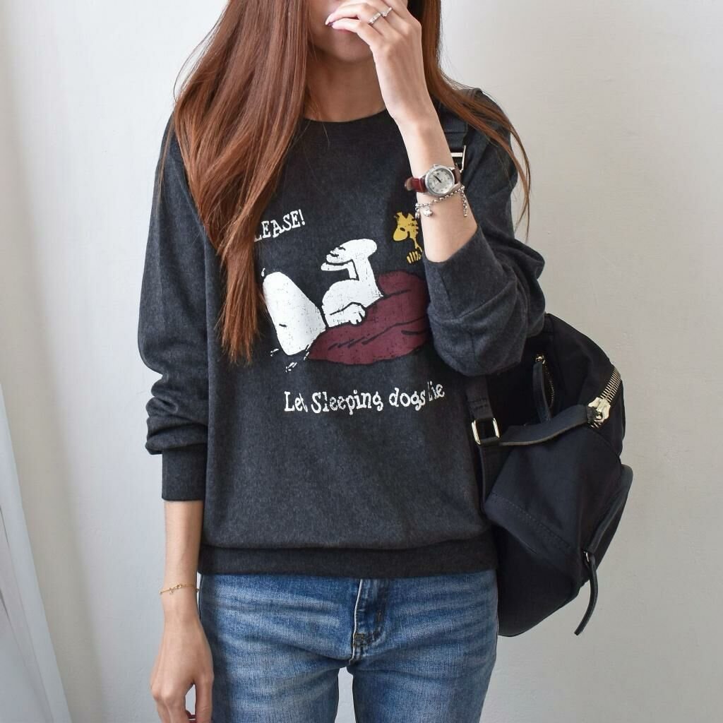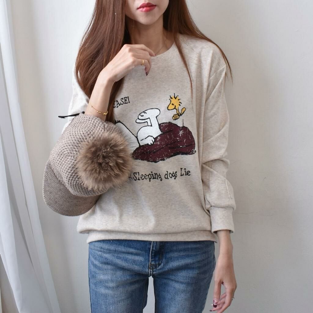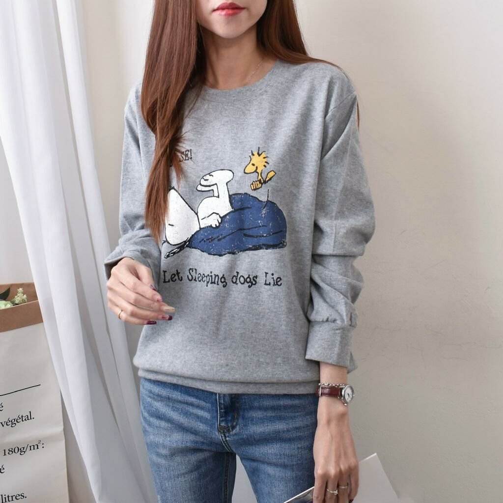 MIT 歐妮Ouni 可愛史努比躺倒印花磨毛T (F1321)