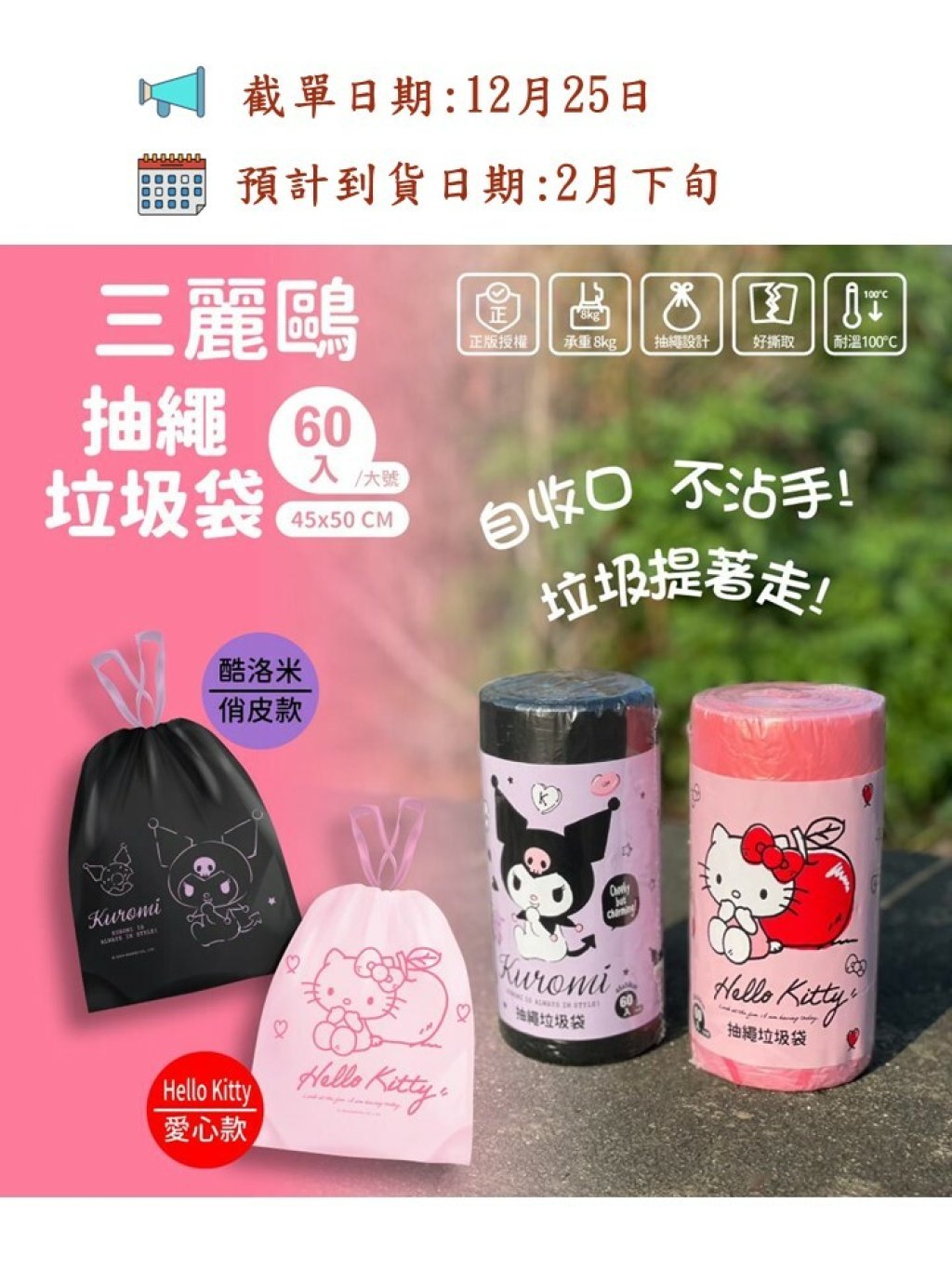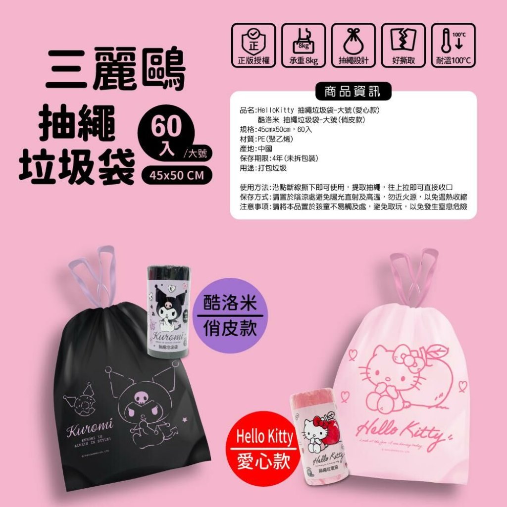 🔹正版授權 🔹承重8kg 🔹抽繩設計 🔹好撕取 🔹耐溫100℃