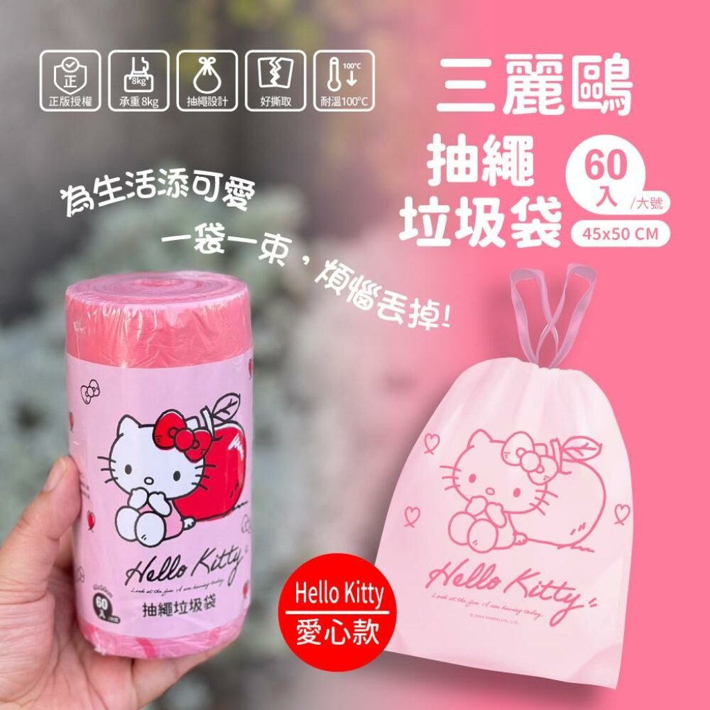 🟡台灣 Sanrio 抽繩垃圾袋 60入/捲(大號) 同款1組2捲🟡