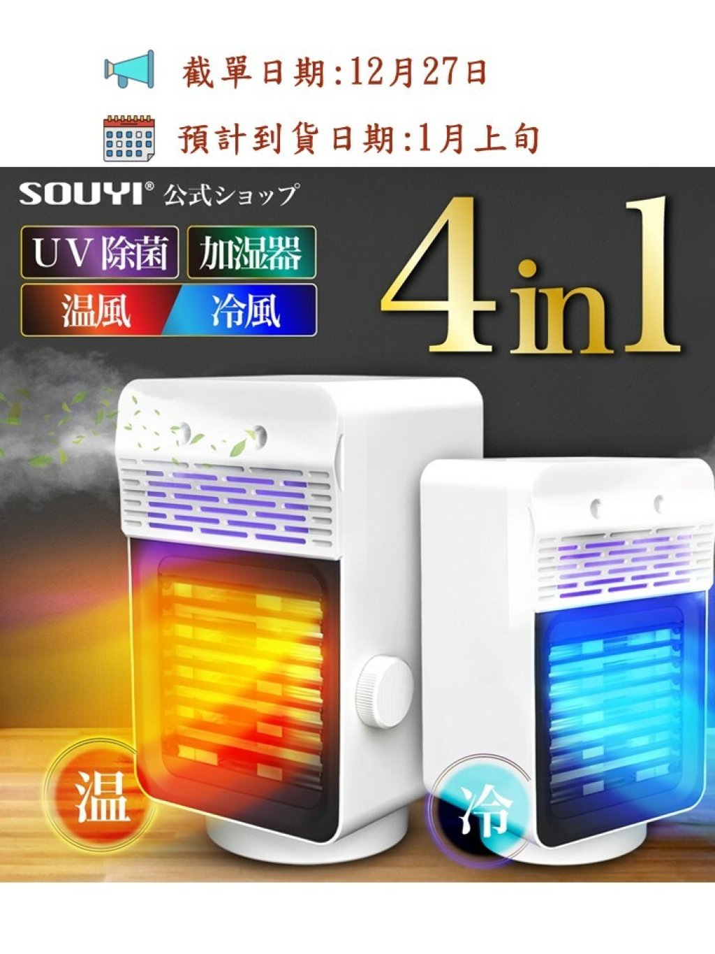 * 暖風、涼風、放濕、紫外線殺菌四大功能於一身,一年四季適用