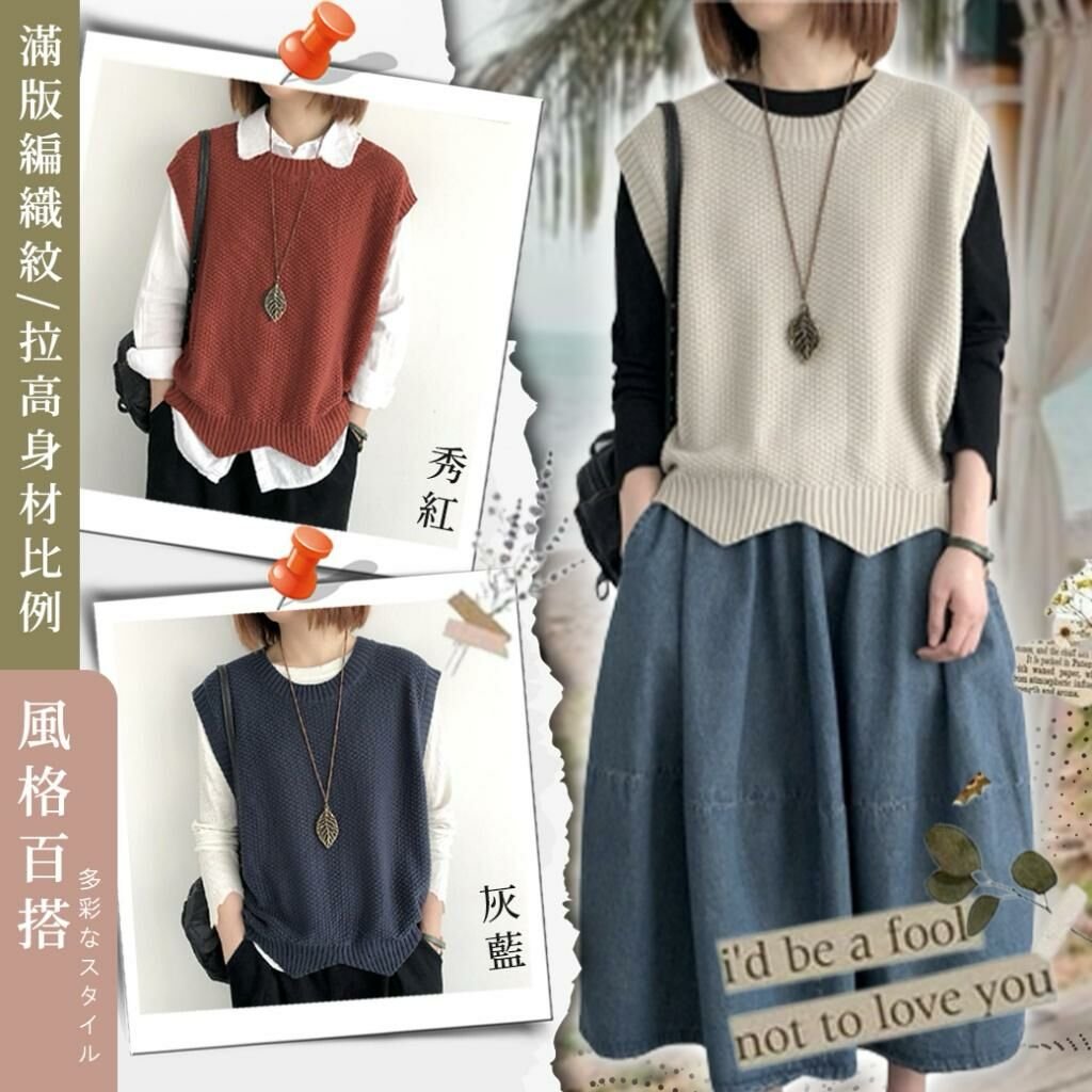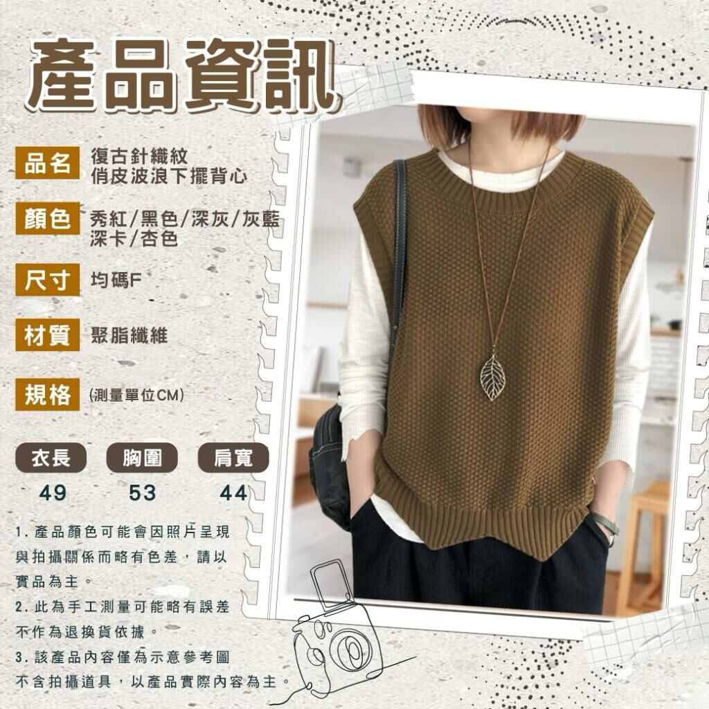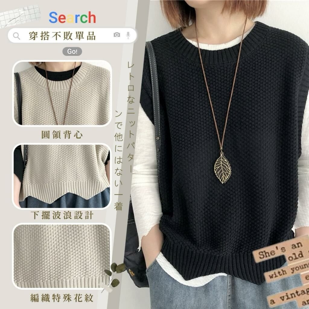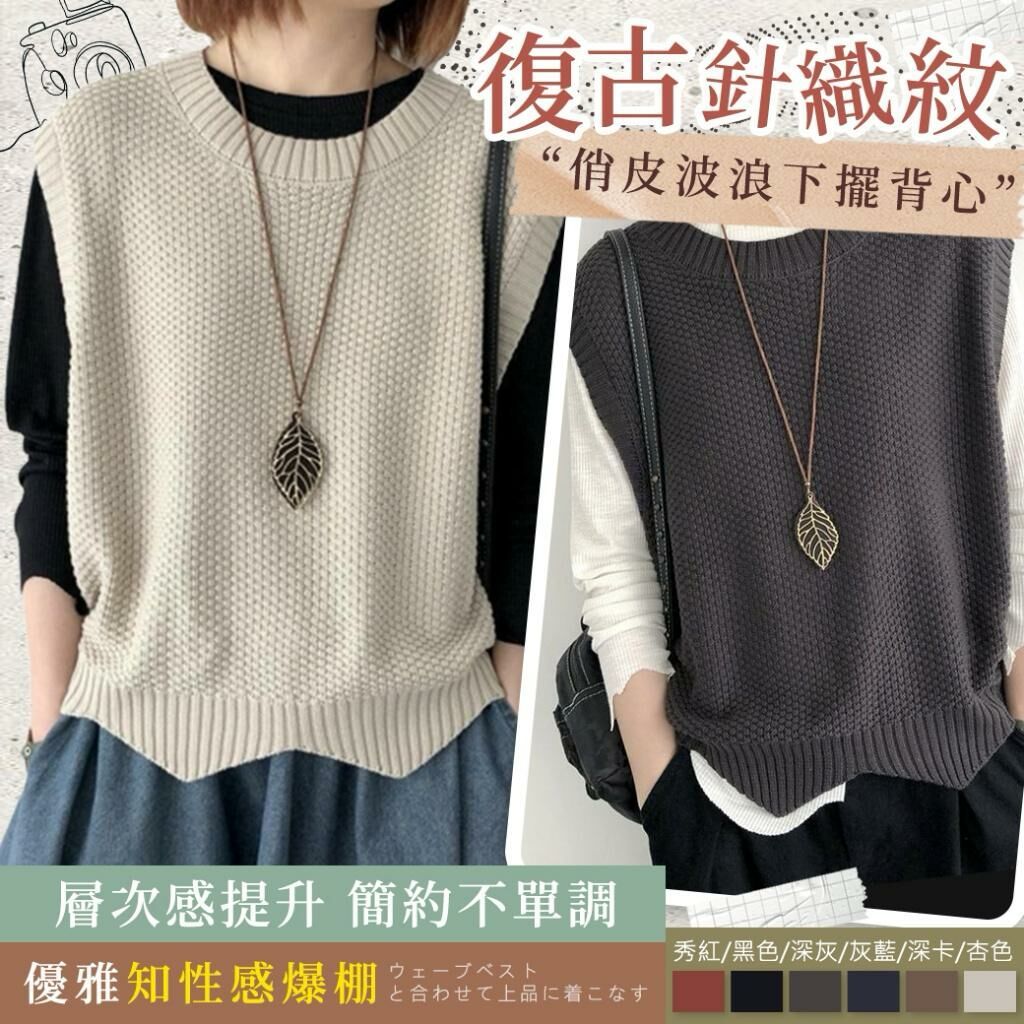 🟡復古針織紋 俏皮波浪下擺背心🟡