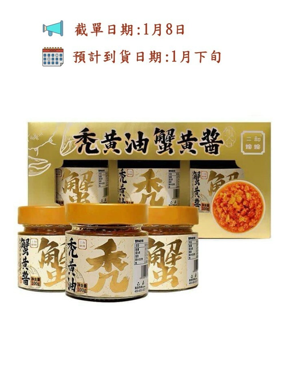 -規格 : 1盒內2瓶蟹黃醬+1瓶禿黃油