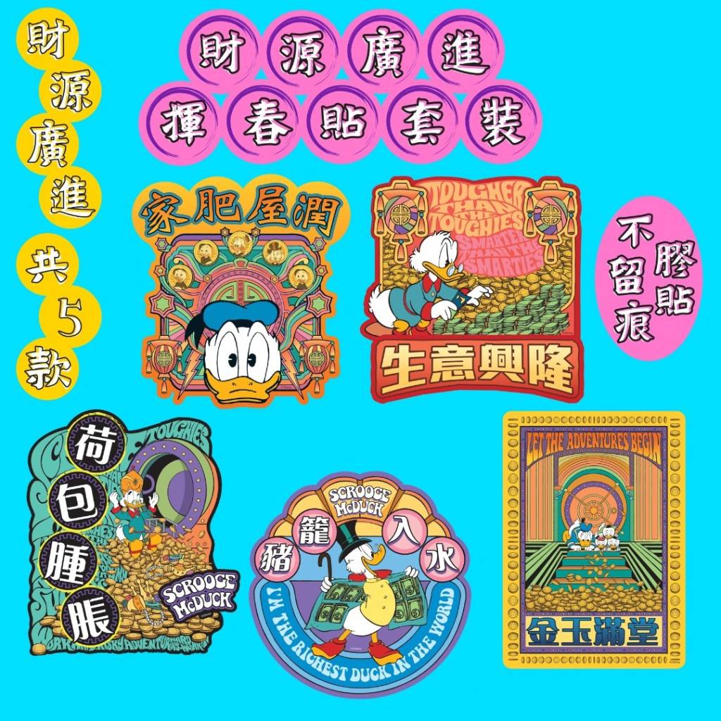 內含:唐老鴨五款揮春貼設計
