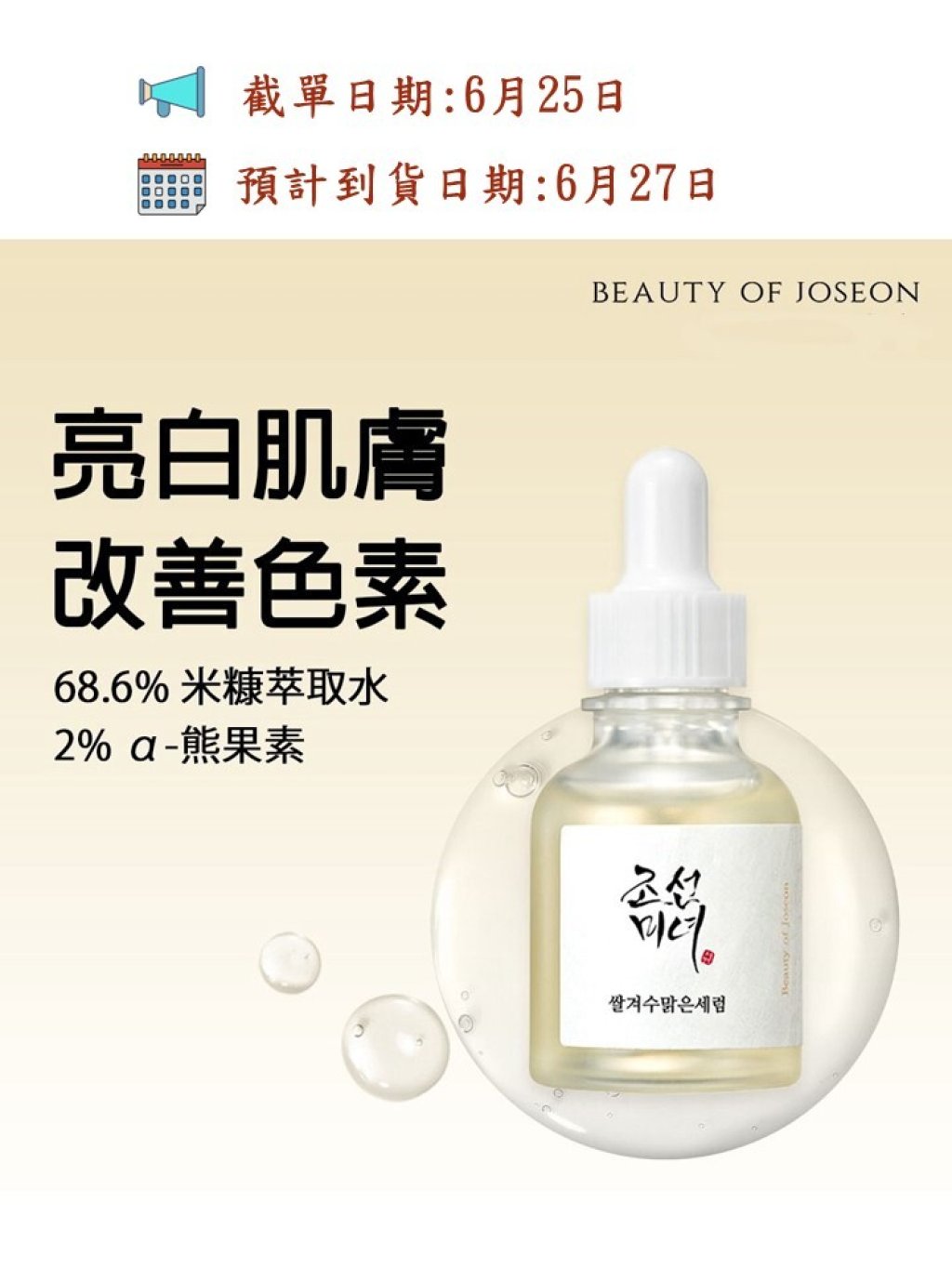 🇰🇷 𝐵𝑒𝑎𝑢𝑡𝑦 𝑜𝑓 𝐽𝑜𝑠𝑒𝑜𝑛✨ 朝鮮美人✰米+α-熊果苷✨ 深層煥彩精華液 30ml
