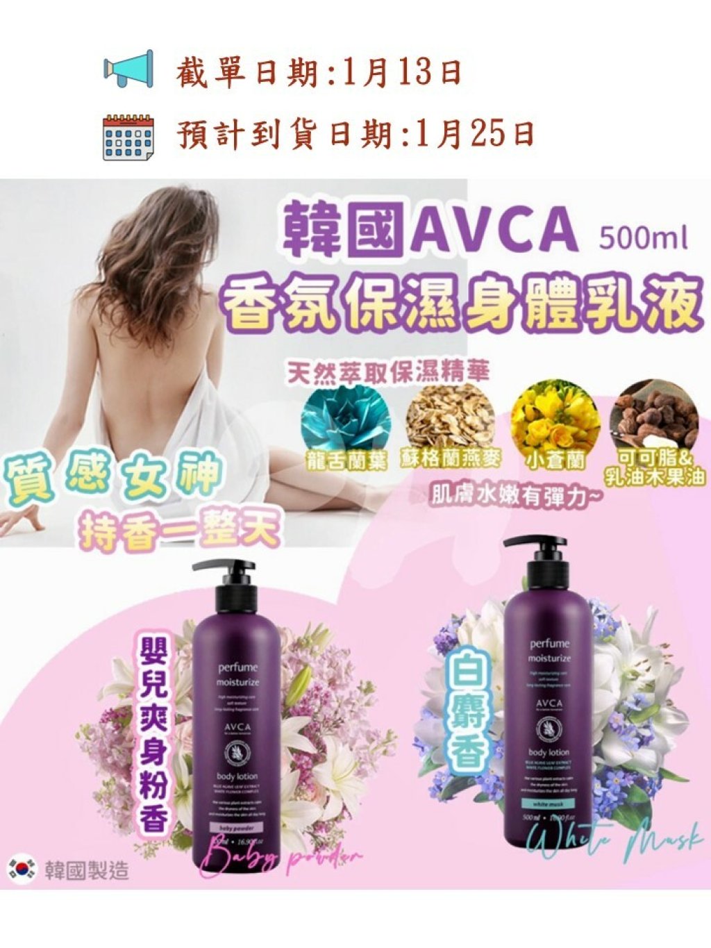 韓國熱賣品牌🇰🇷AVCA香氛滋潤身體潤膚乳 500ml