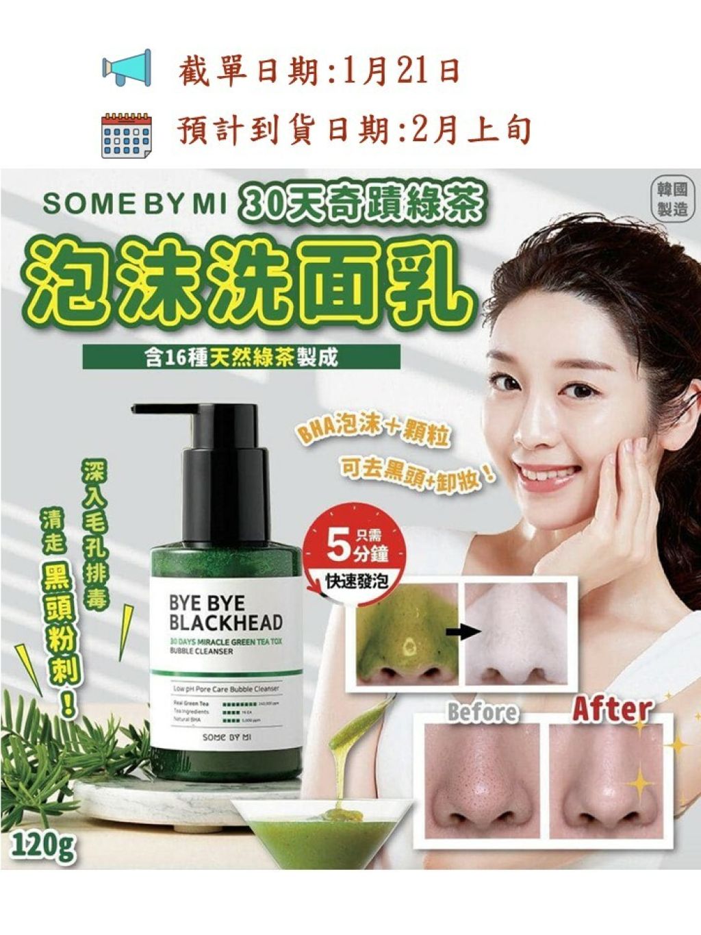 韓國🇰🇷 SOME BY MI 再見黑頭 30天奇蹟綠茶泡沫洗面乳 (120g)