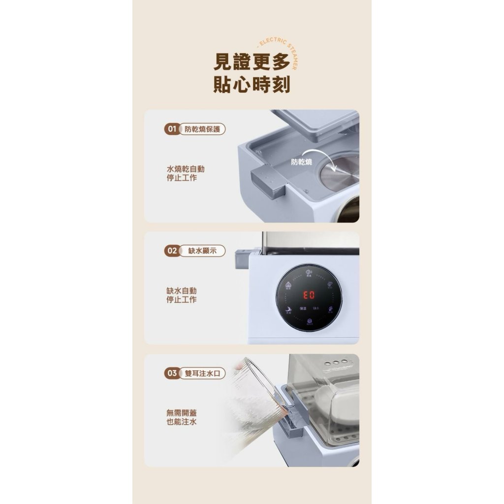 4、SUS304不鏽鋼蒸盤,防乾燒保護設計