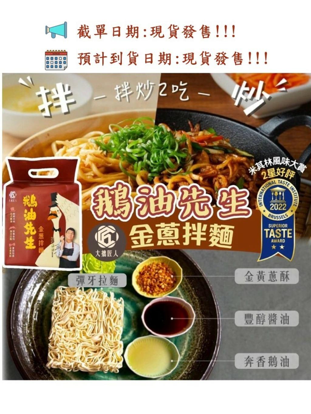 食品米其林風味大賞2星好評🌟🌟以法式黃金鵝油🦆 —「純鵝脂」為基底煉製優質鵝油🈺脂肪酸比例同橄欖油相似健康又美味,入口清雅不臊🤤配上180日台灣正宗釀造香醇醬油同香脆蔥酥形成高級珍貴🍜拌麵食落啖啖幸福滋味🥰拌炒皆宜👍各有風味✅獲食品米其林風味大賞2星好評✅香醇法式黃金鵝油 ✅手工麵彈牙耐煮✅拌炒皆宜!一麵兩食!食用日期:2024年6月