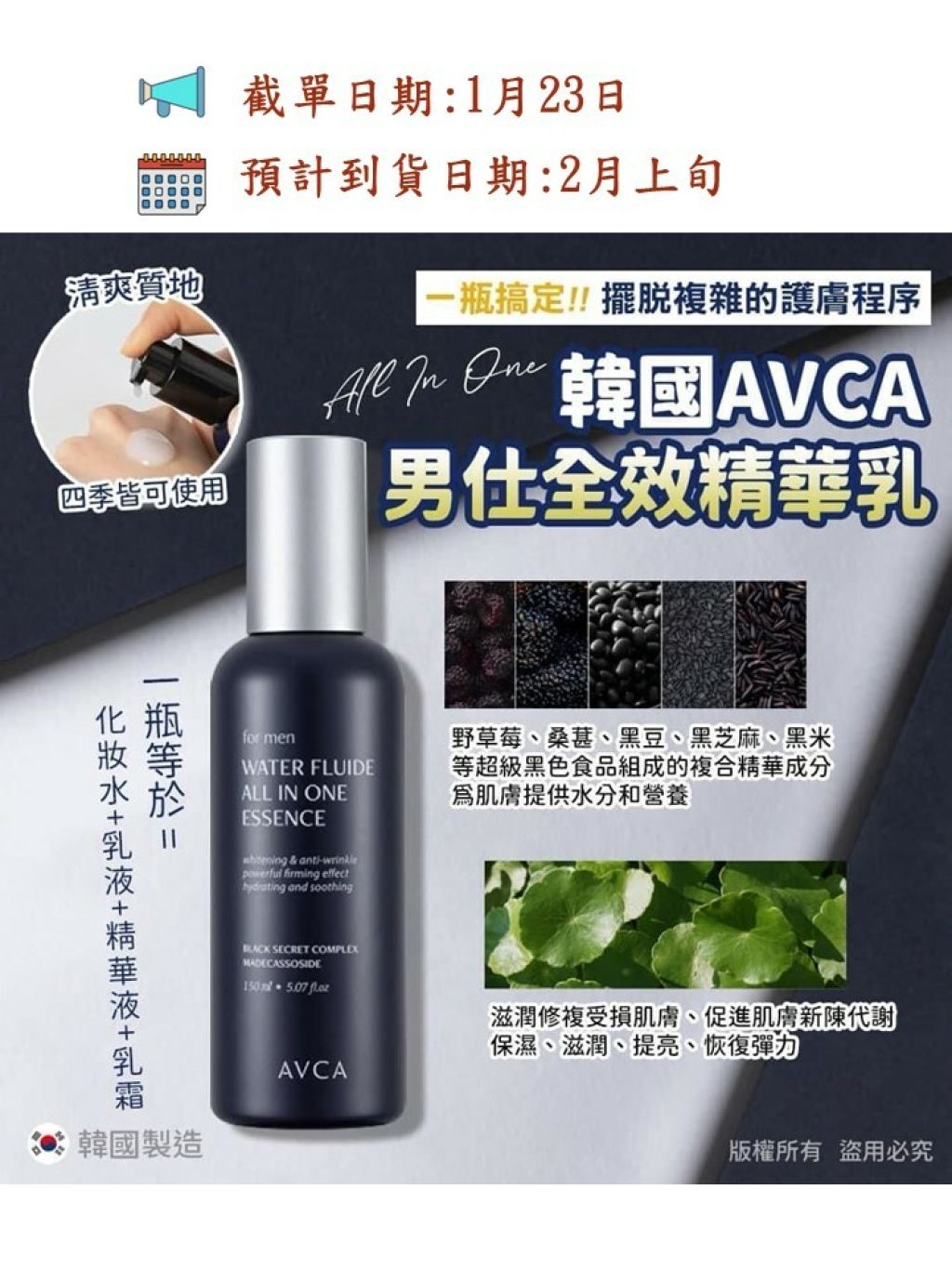 Avca For Men 男士水液精華多效合一 150ml