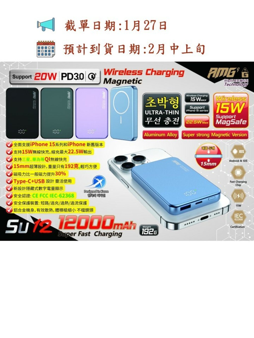 最新韓國品牌AMG SU-12🔥MagSafe 外置電 12000 mah 🔋