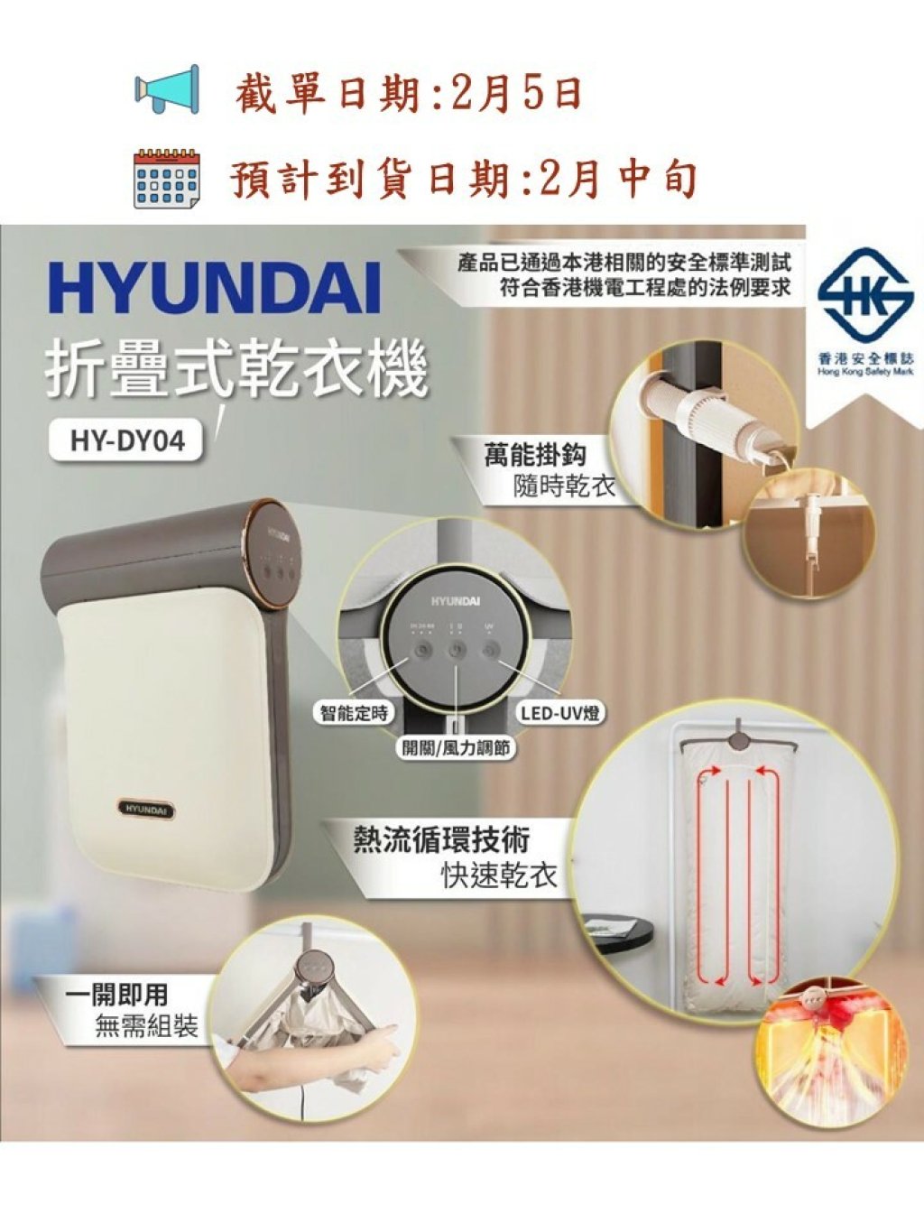 【HYUNDAI HY-DY04 折疊式乾衣機獲香港安全標誌認證🏆】