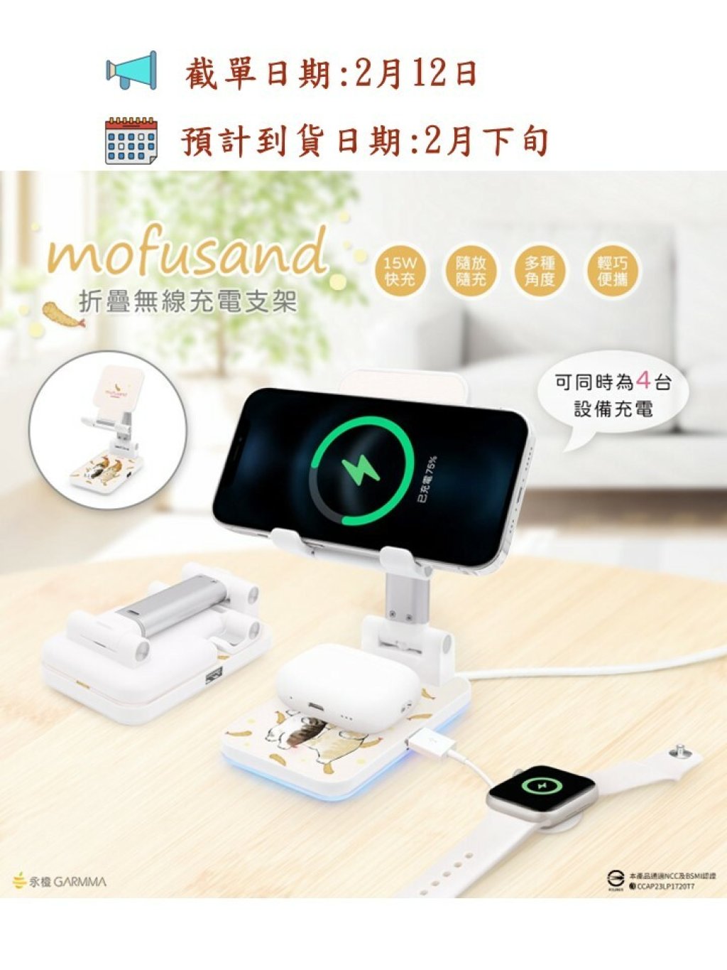🟡台灣 Mofusand 貓福珊迪 折疊無線充電支架🟡