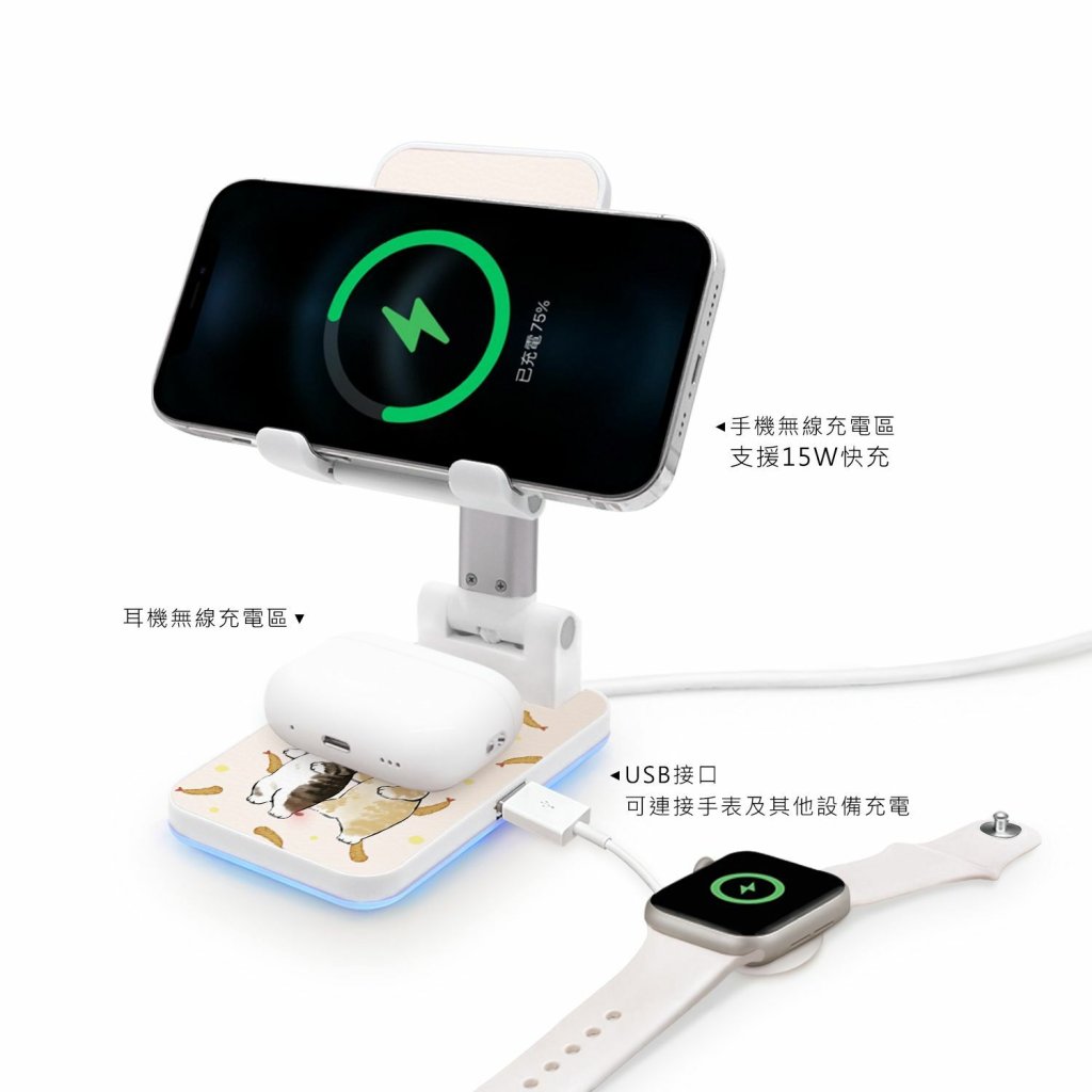 台灣Mofusand 貓福珊迪 折疊無線充電支架