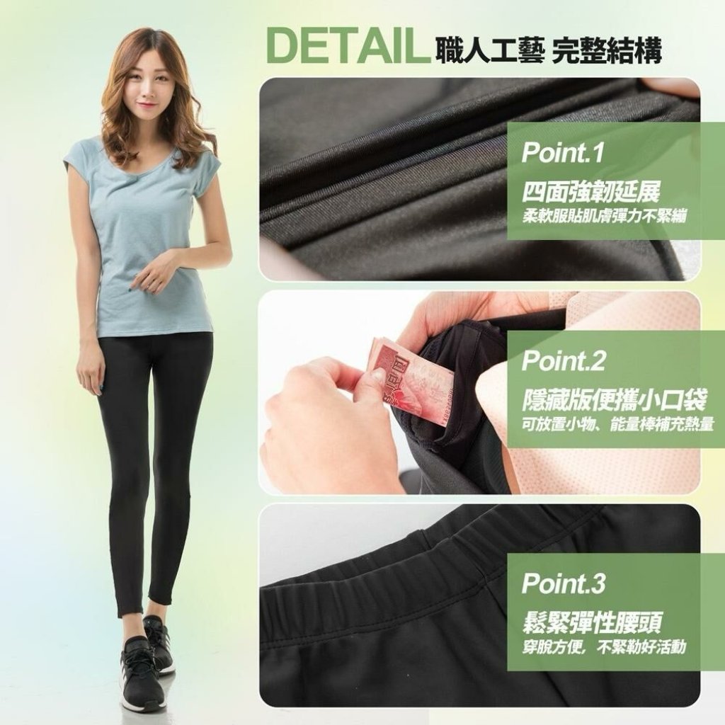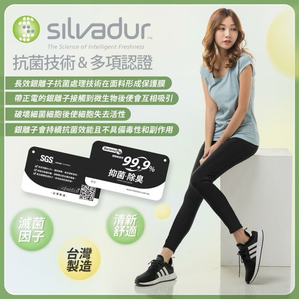 MIT 掰了味~ 抑菌99.9%彈力機能休閒運動貼腿褲