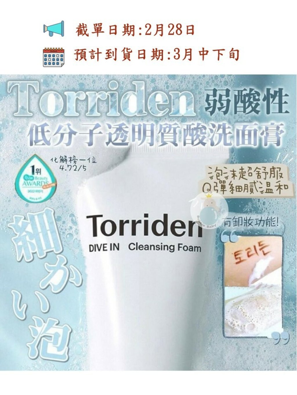 ✨加入Torriden獨特5D複合透明質酸 (Hyacross) 極緻超保濕成份、尿囊素,潔淨肌膚同時保濕、軟化角質、舒緩乾燥、鎮定肌膚💦