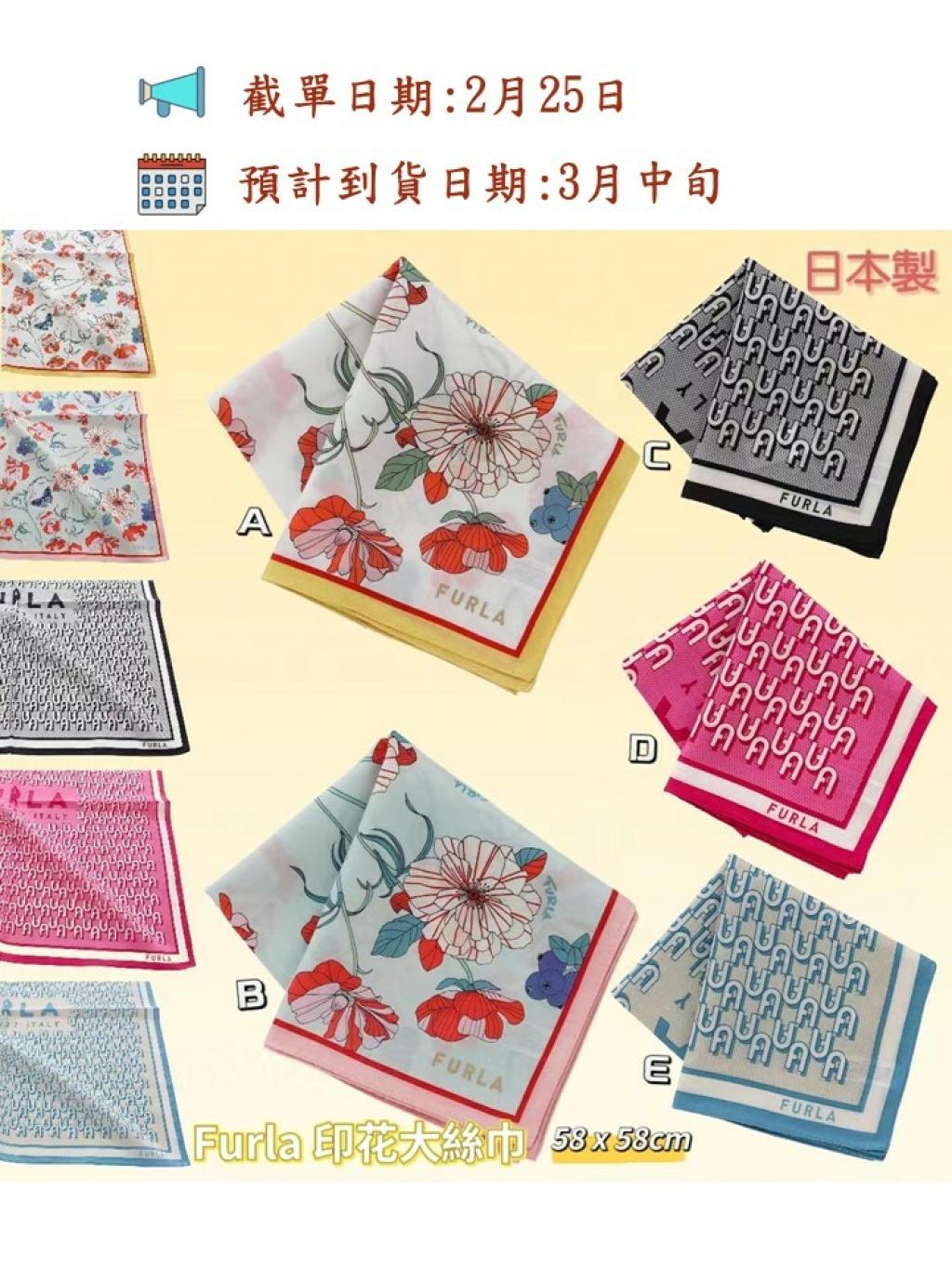 日本製 Furla 印花大絲巾 (58 x 58cm)