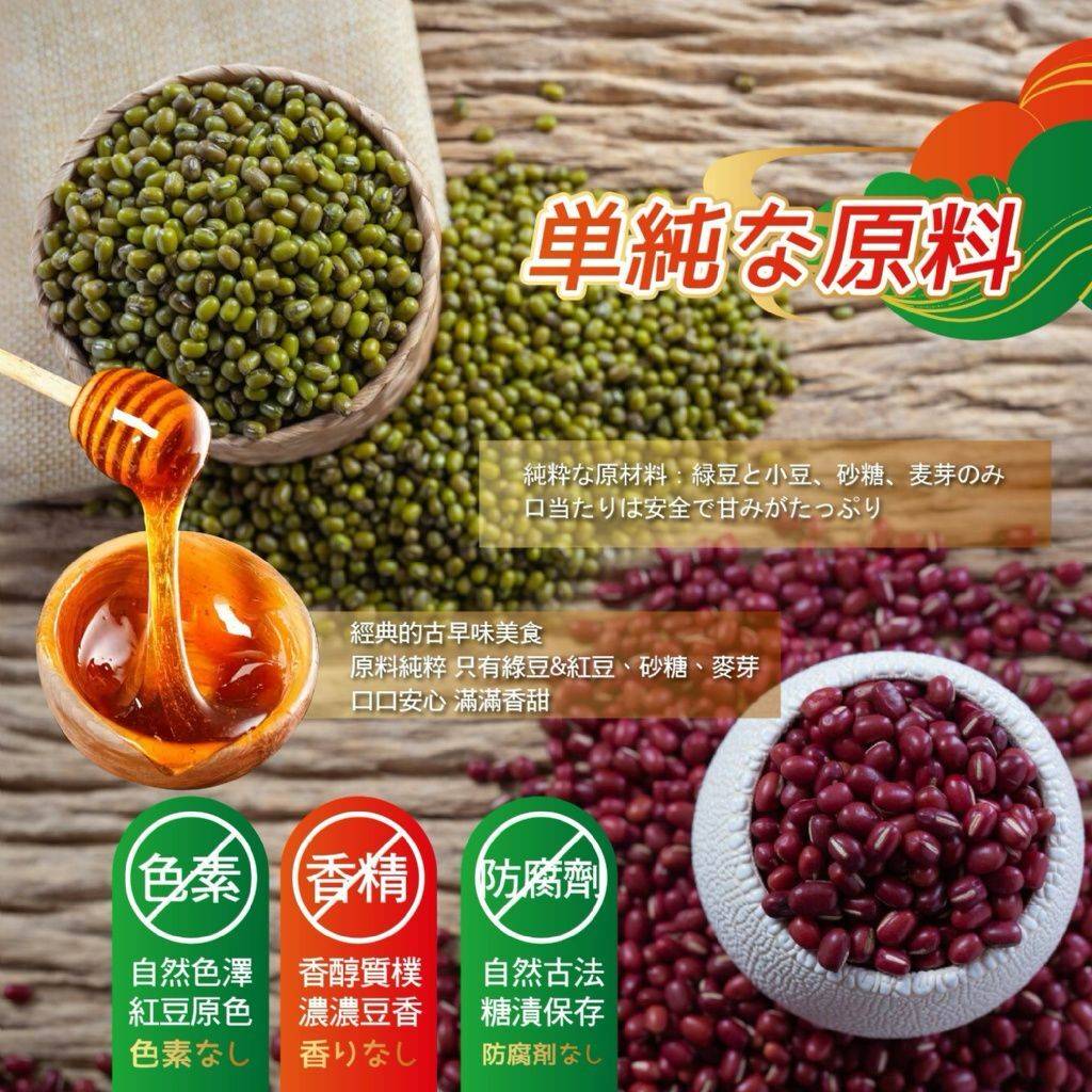 成分:綠豆(綠豆丸)、紅豆(紅豆丸)、砂糖、麥芽