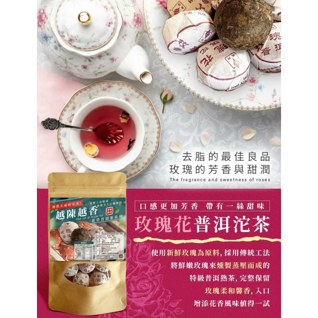 運用傳統工法,以新鮮玫瑰來燻製蒸壓而成的特級普洱熟茶