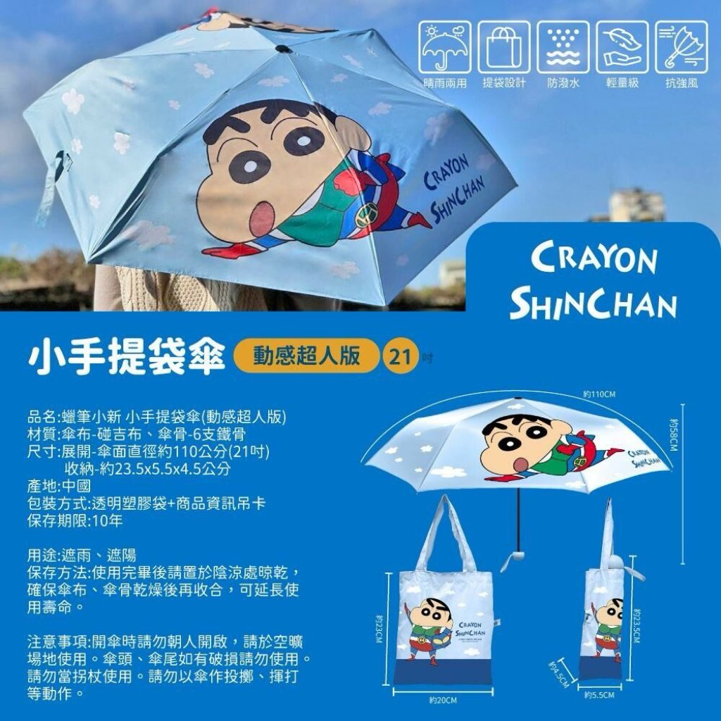 蠟筆小新~提袋手開傘組(動感超人版)