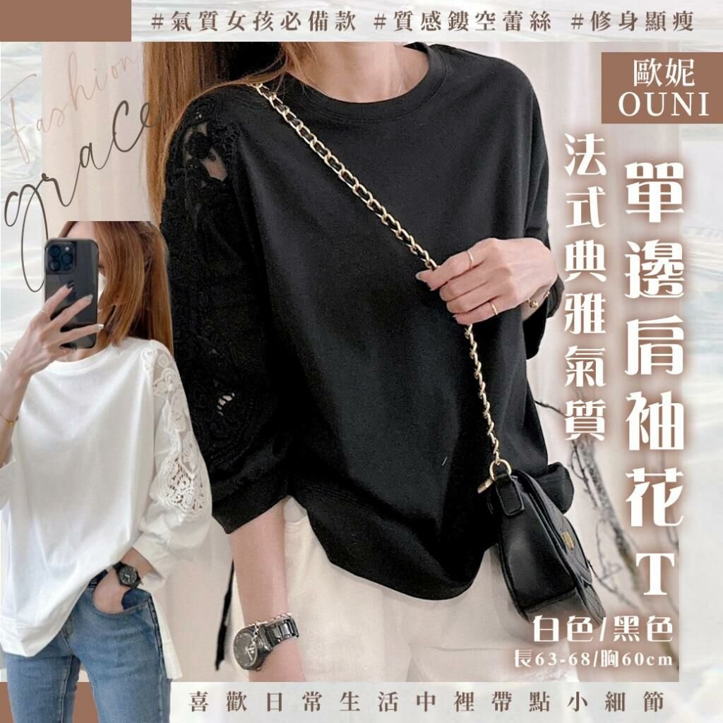 MIT 歐妮Ouni 法式典雅氣質單邊肩袖花T