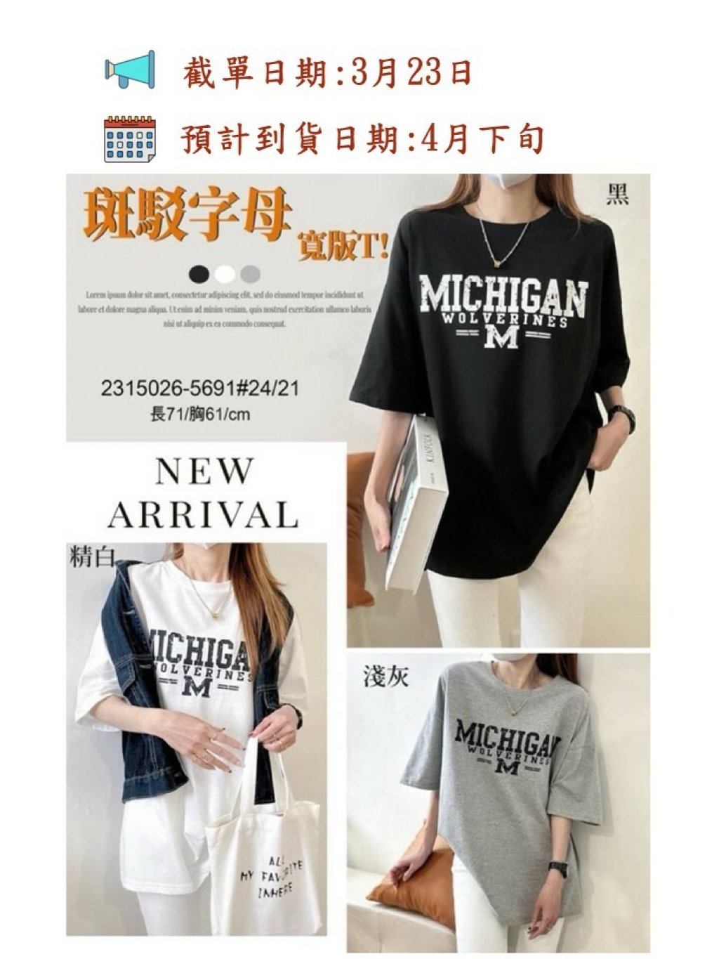 🟡寬鬆斑駁字母寬鬆圓領圖T恤🟡